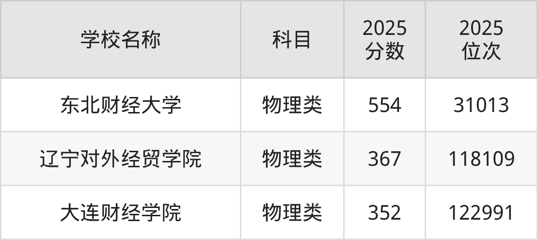 下文为2025年大连市财经类大学在辽宁物理类录取分数线和位次排名表,供大家参考: