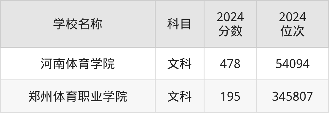 下文为2024年郑州市体育类大学在河南文科录取分数线和位次排名表,供大家参考: