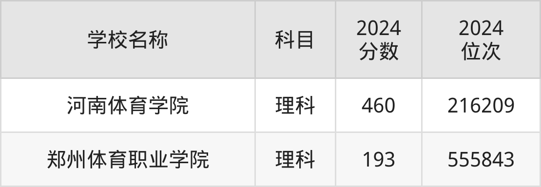 下文为2024年郑州市体育类大学在河南理科录取分数线和位次排名表,供大家参考: