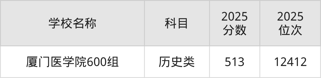 下文为2025年厦门市医科大学在福建历史类录取分数线和位次排名表,供大家参考: