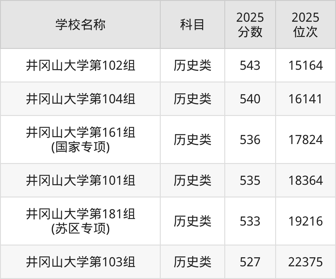 下文为2025年吉安市本科大学在江西历史类录取分数线和位次排名表,供大家参考: