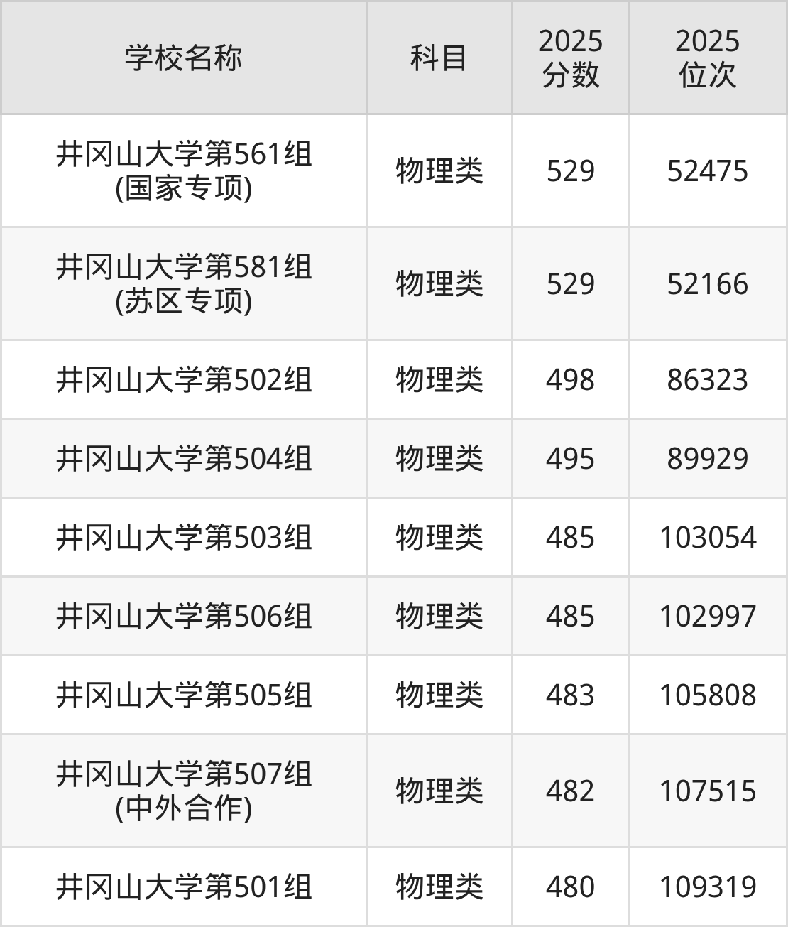 下文为2025年吉安市本科大学在江西物理类录取分数线和位次排名表,供大家参考:
