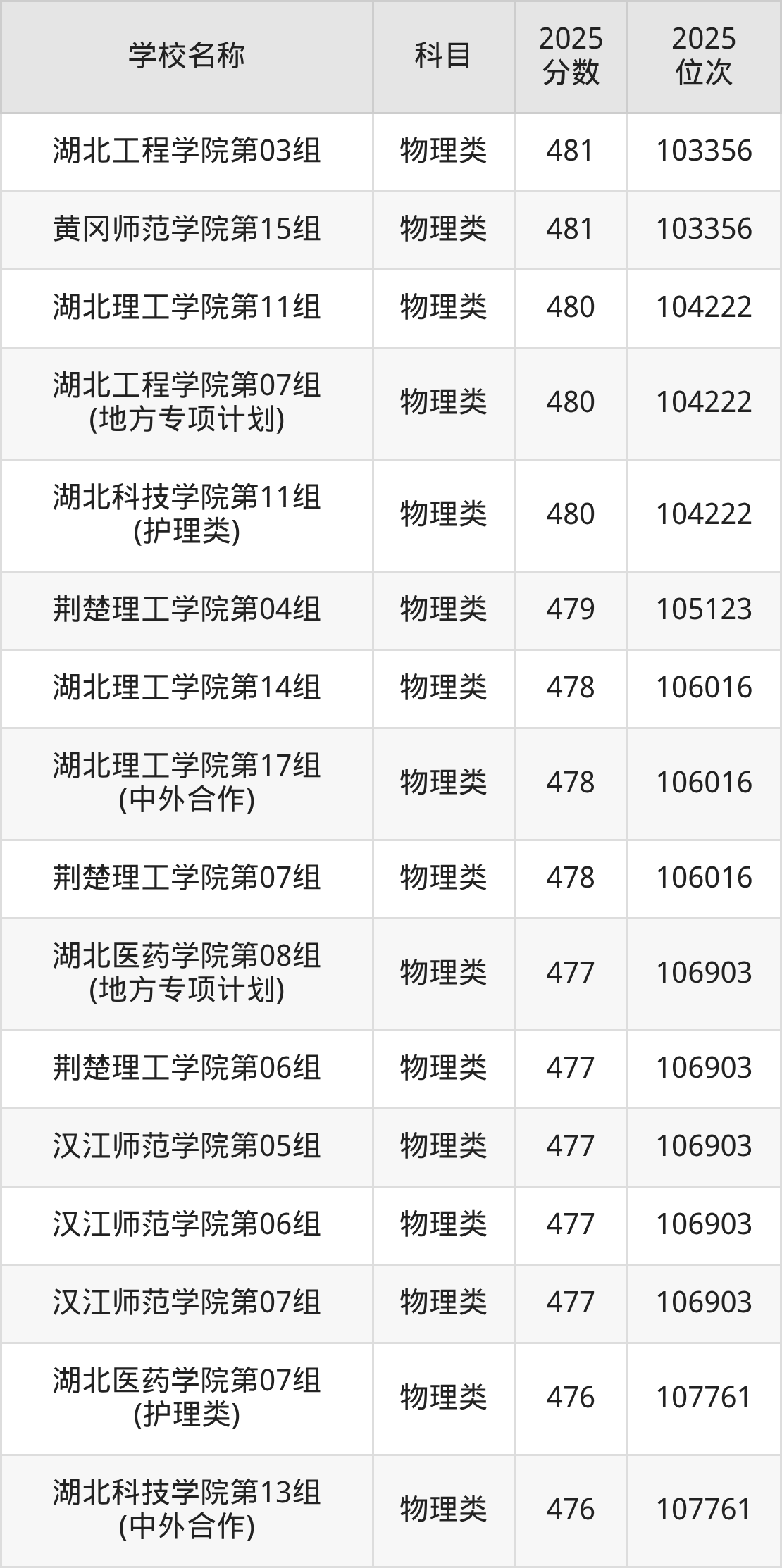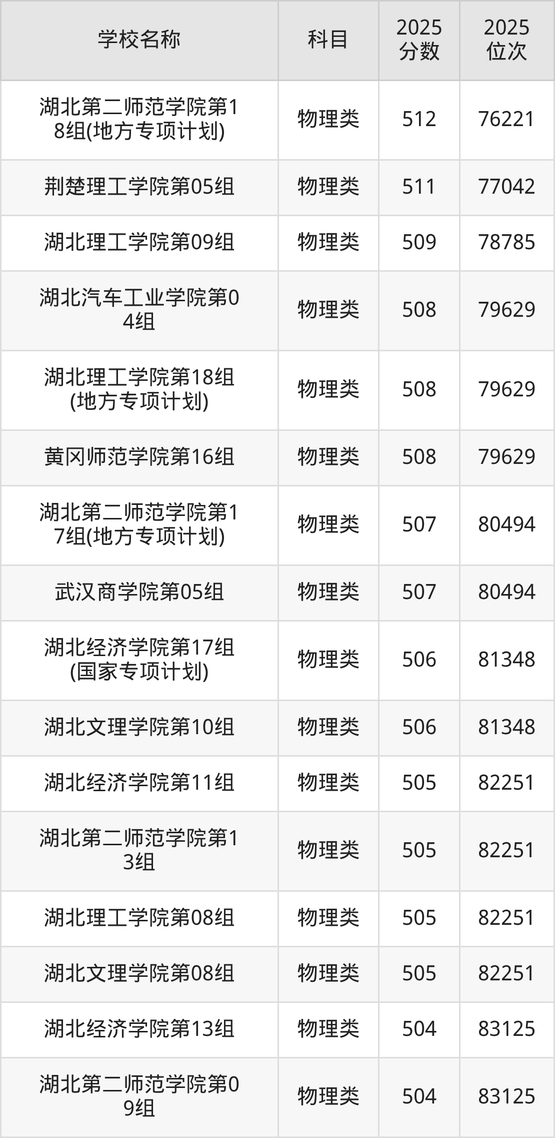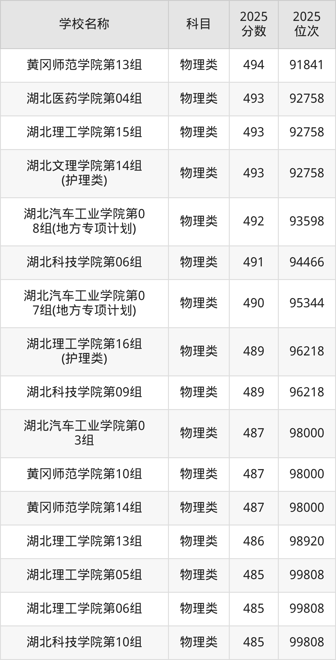下文为2025年湖北省公办二本大学在湖北物理类录取分数线和位次排名表,供大家参考: