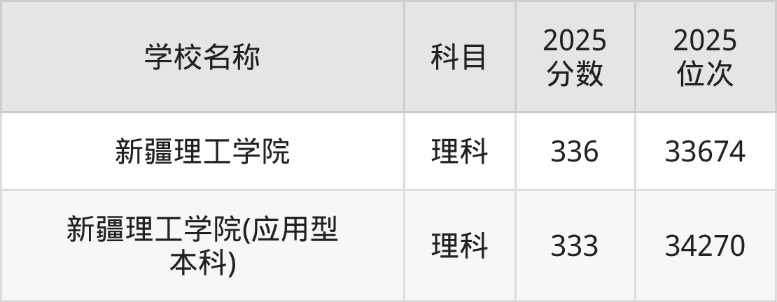 下文为2025年阿克苏地区市本科大学在新疆理科录取分数线和位次排名表,供大家参考: