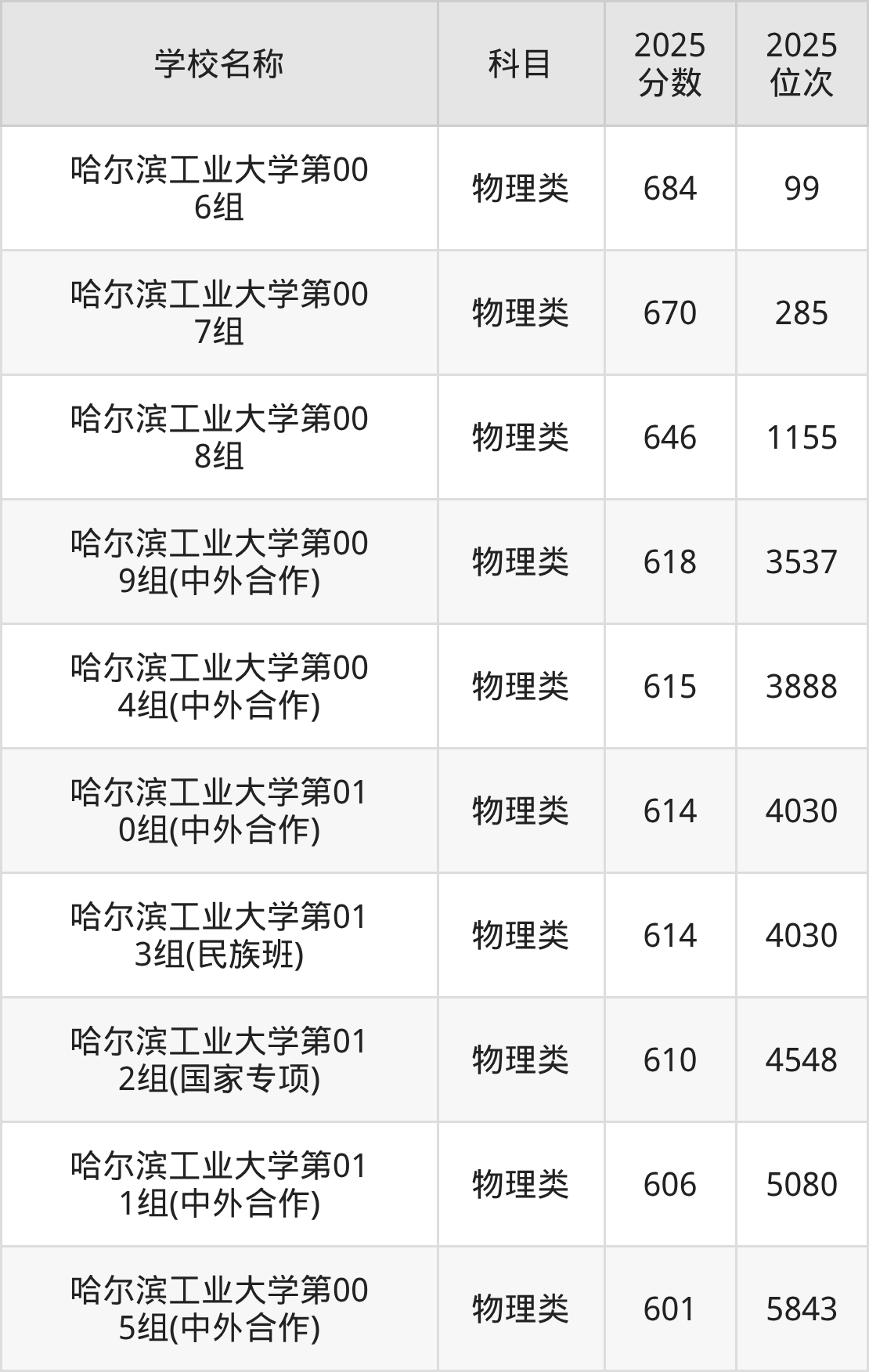根据2025年哈尔滨985大学在黑龙江省物理类招生录取分数线来看,哈尔滨物理类收分最低的985大学为哈尔滨工业大学,录取分数线为601分。