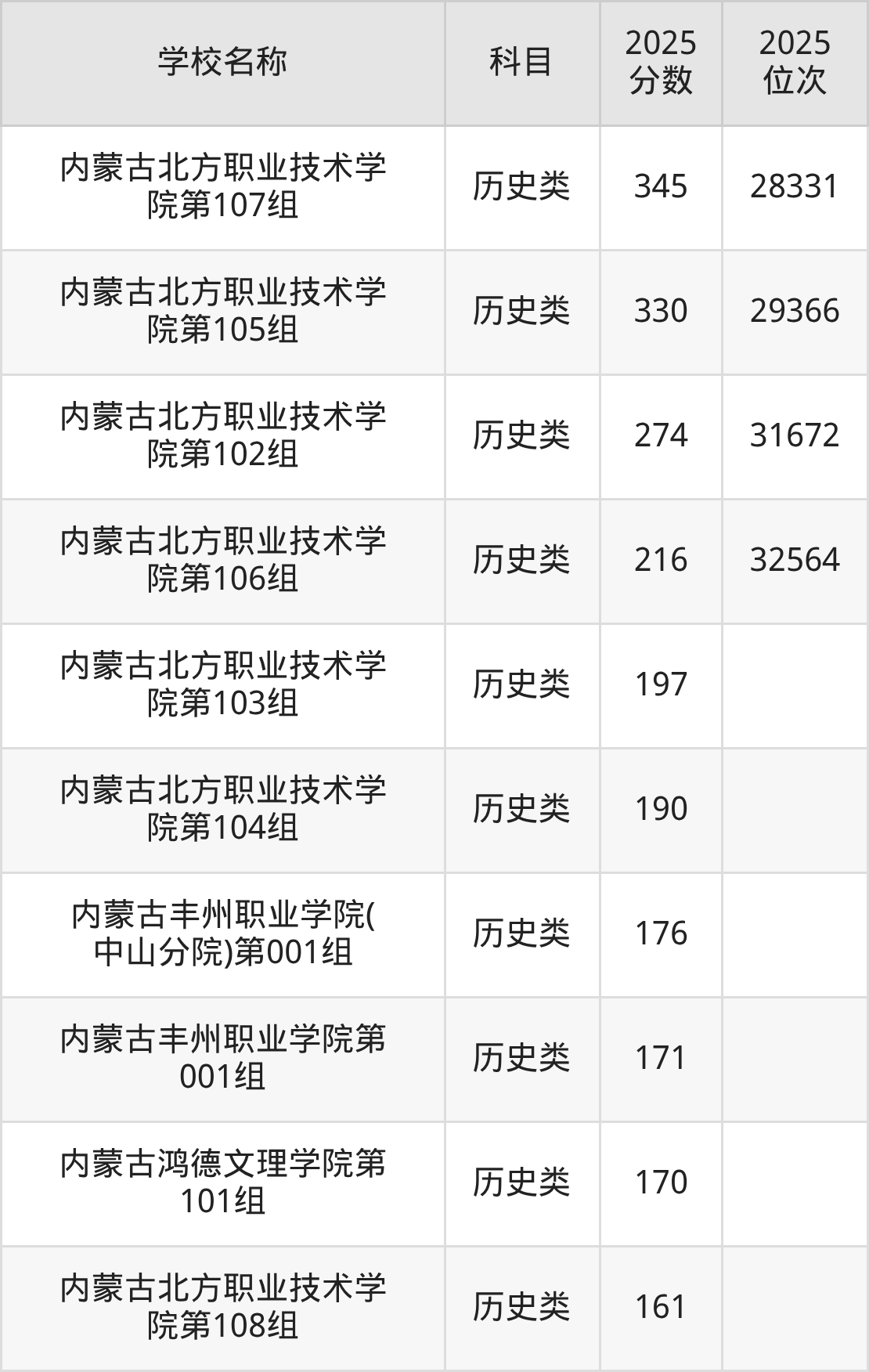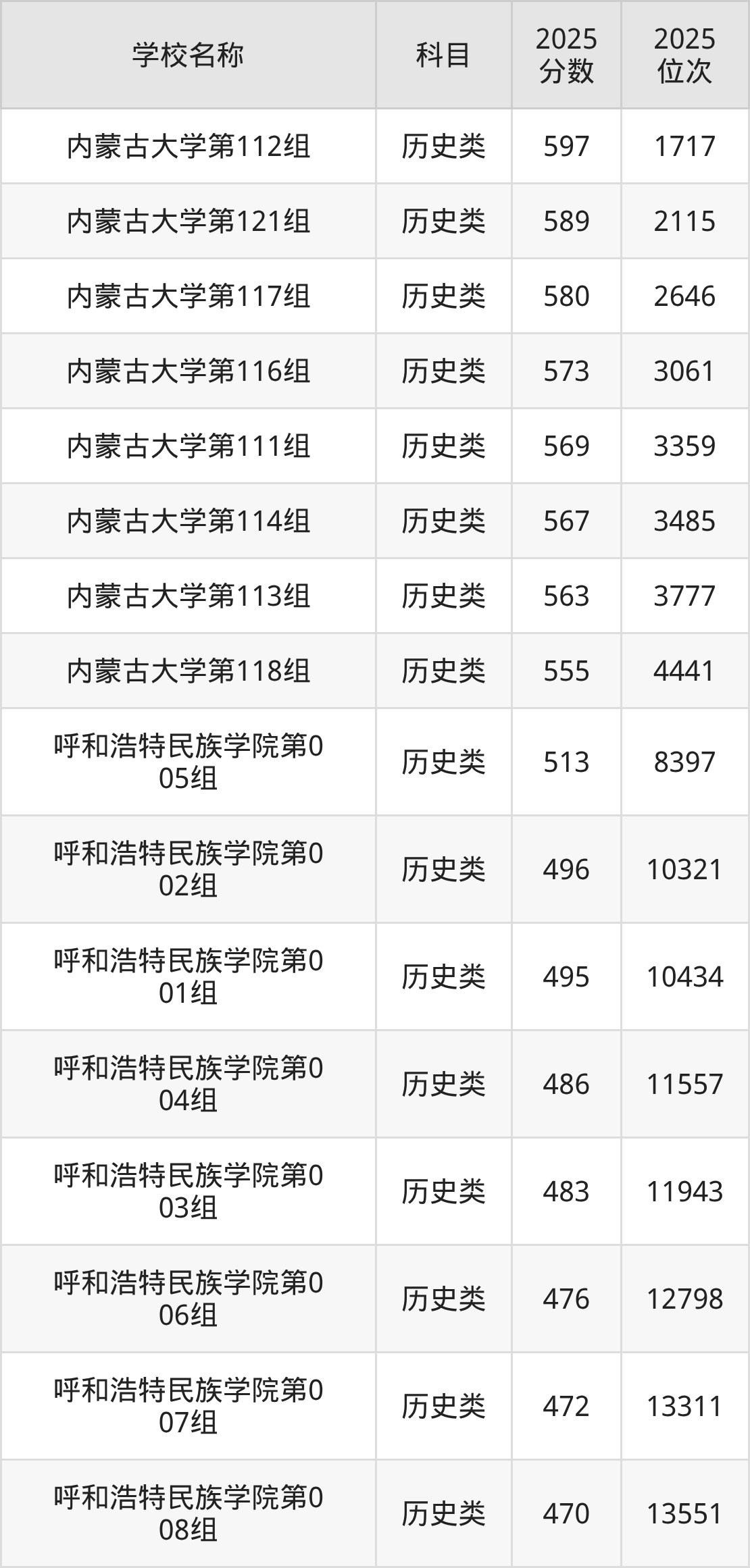 下文为2025年呼和浩特市综合类大学在内蒙古历史类录取分数线和位次排名表,供大家参考: