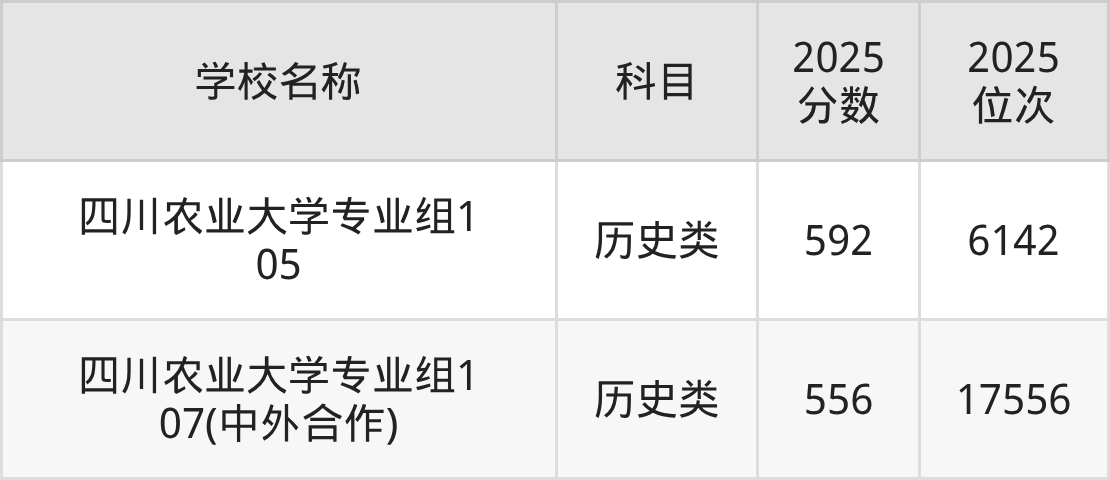 下文为2025年雅安市本科大学在四川历史类录取分数线和位次排名表,供大家参考: