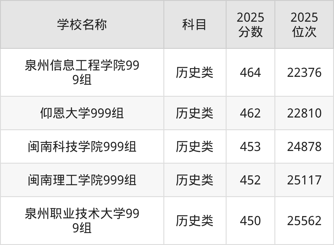 下文为2025年泉州市民办二本大学在福建历史类录取分数线和位次排名表,供大家参考: