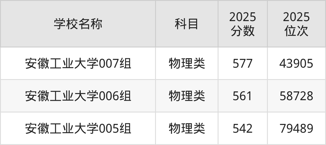 下文为2025年马鞍山市一本大学在安徽物理类录取分数线和位次排名表,供大家参考: