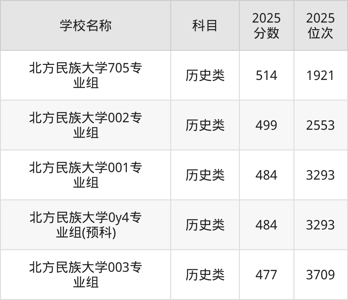 下文为2025年银川市民族类大学在宁夏历史类录取分数线和位次排名表,供大家参考: