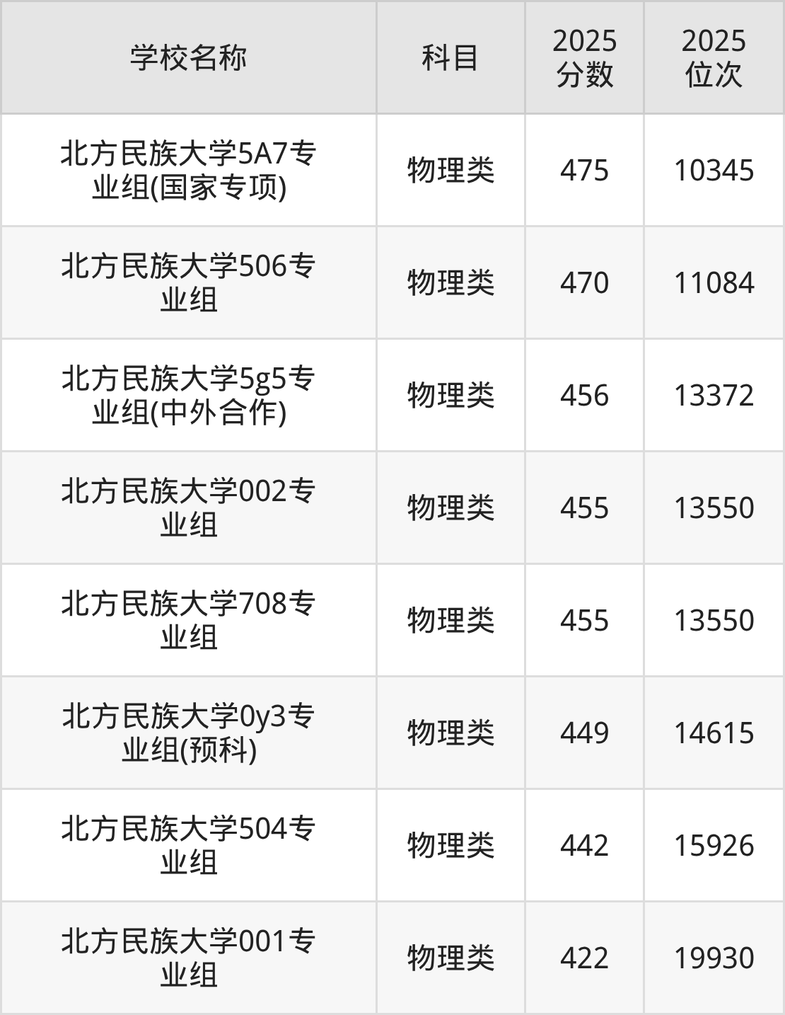 下文为2025年银川市民族类大学在宁夏物理类录取分数线和位次排名表,供大家参考: