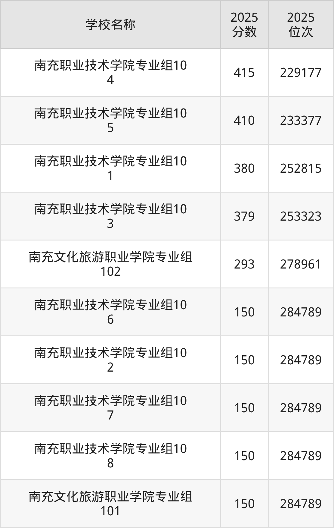 下文为2025年南充市公办专科大学在四川历史类录取分数线和位次排名表,供大家参考: