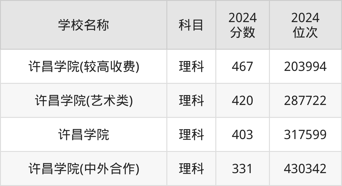 下文为2024年许昌市本科大学在河南理科录取分数线和位次排名表,供大家参考:
