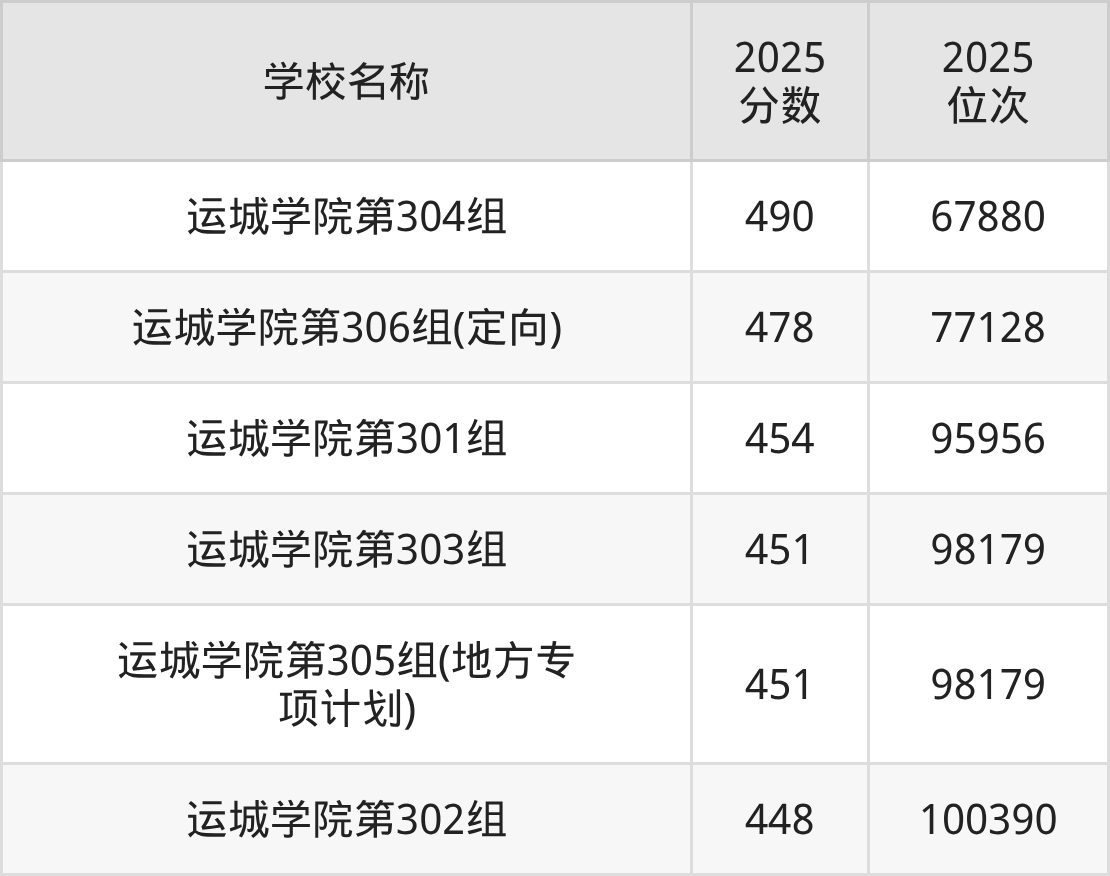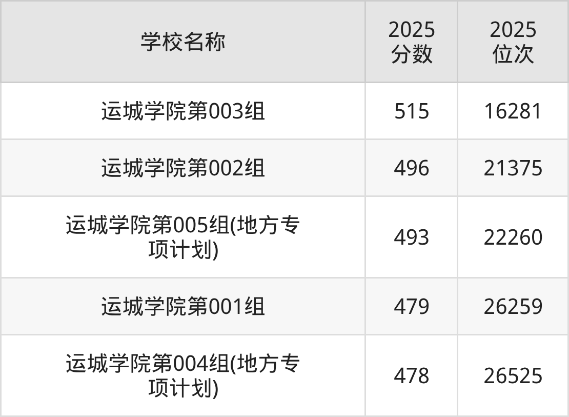 下文为2025年运城市公办二本大学在山西历史类录取分数线和位次排名表,供大家参考: