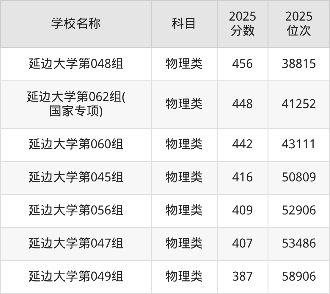 下文为2025年延边朝鲜族自治州211大学在吉林物理类录取分数线和位次排名表,供大家参考: