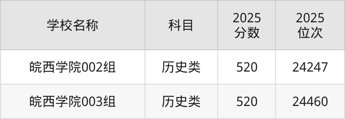 下文为2025年六安市本科大学在安徽历史类录取分数线和位次排名表,供大家参考: