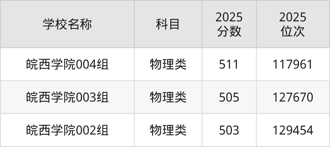 下文为2025年六安市本科大学在安徽物理类录取分数线和位次排名表,供大家参考:
