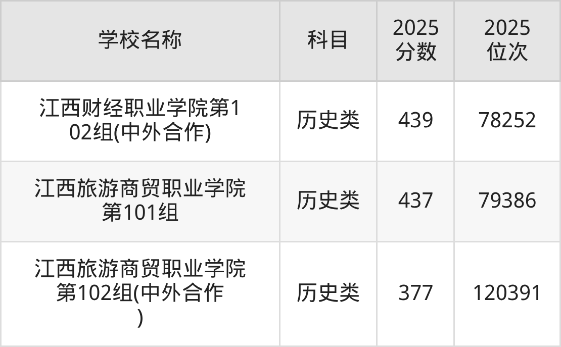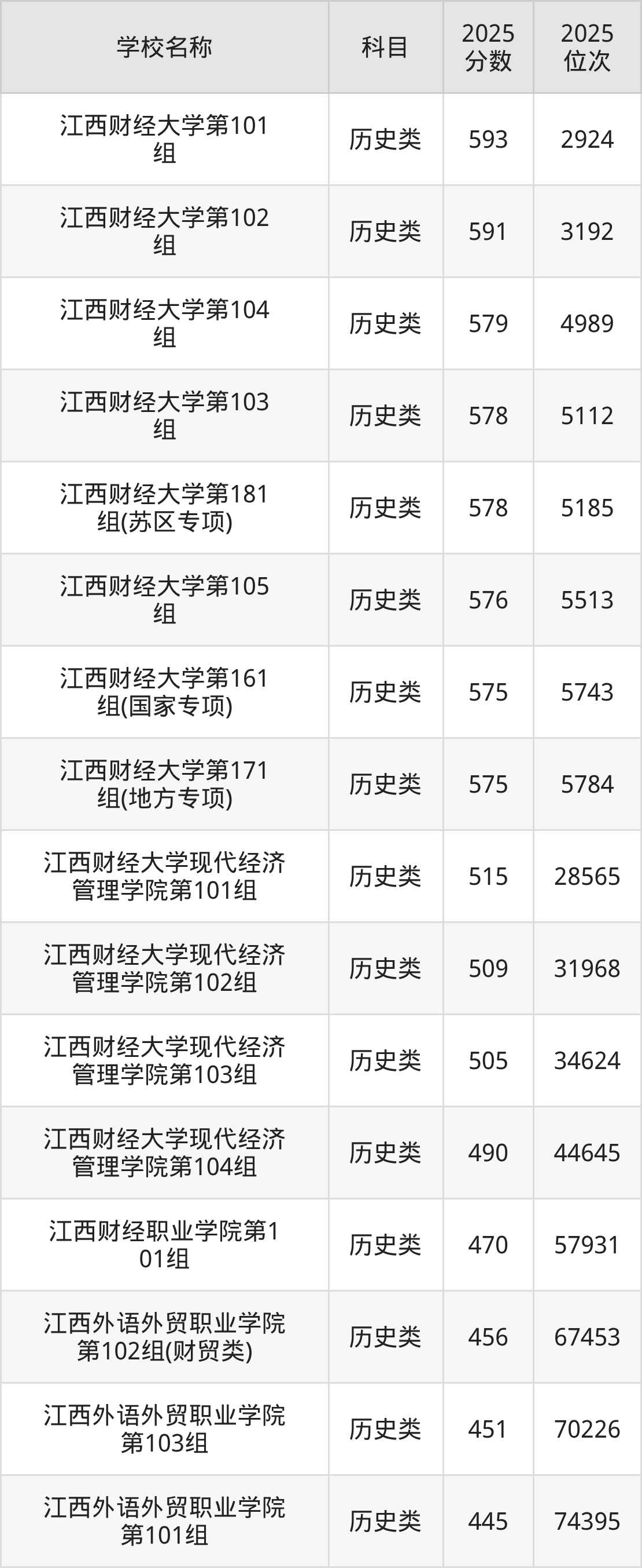 下文为2025年江西省财经类大学在江西历史类录取分数线和位次排名表,供大家参考: