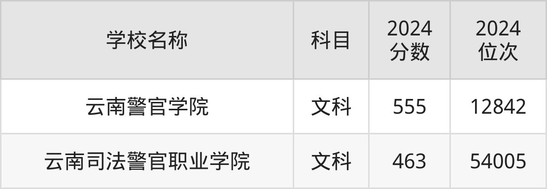 下文为2024年云南省公安警察大学在云南文科录取分数线和位次排名表,供大家参考: