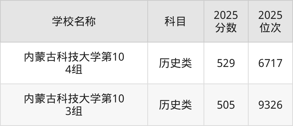 下文为2025年包头市含保研资格的大学在内蒙古历史类录取分数线和位次排名表,供大家参考: