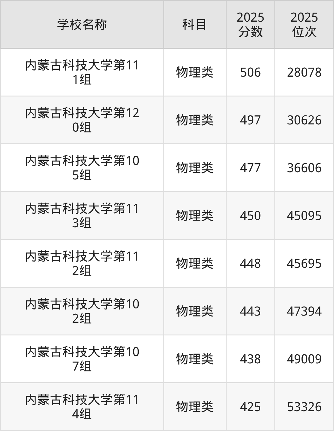 下文为2025年包头市含保研资格的大学在内蒙古物理类录取分数线和位次排名表,供大家参考: