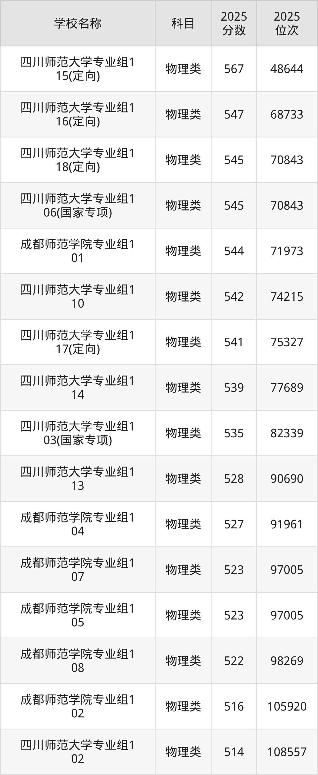 下文为2025年成都市师范类大学在四川物理类录取分数线和位次排名表,供大家参考: