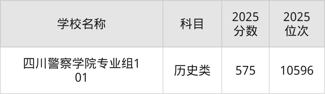 下文为2025年泸州市公安警察大学在四川历史类录取分数线和位次排名表,供大家参考: