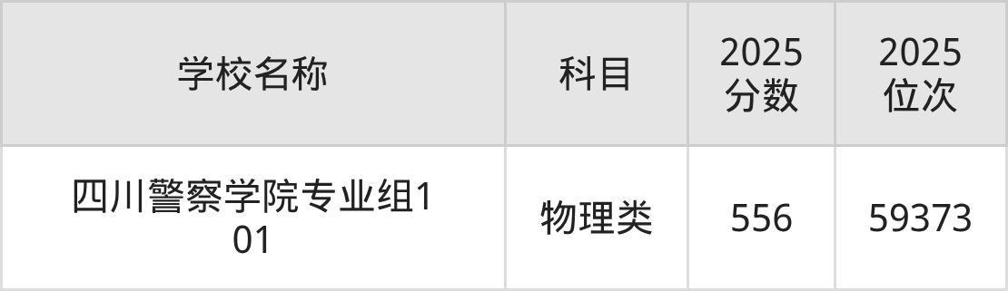 下文为2025年泸州市公安警察大学在四川物理类录取分数线和位次排名表,供大家参考: