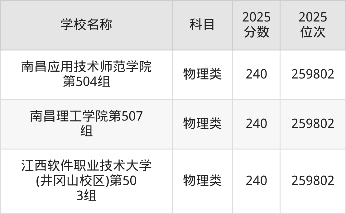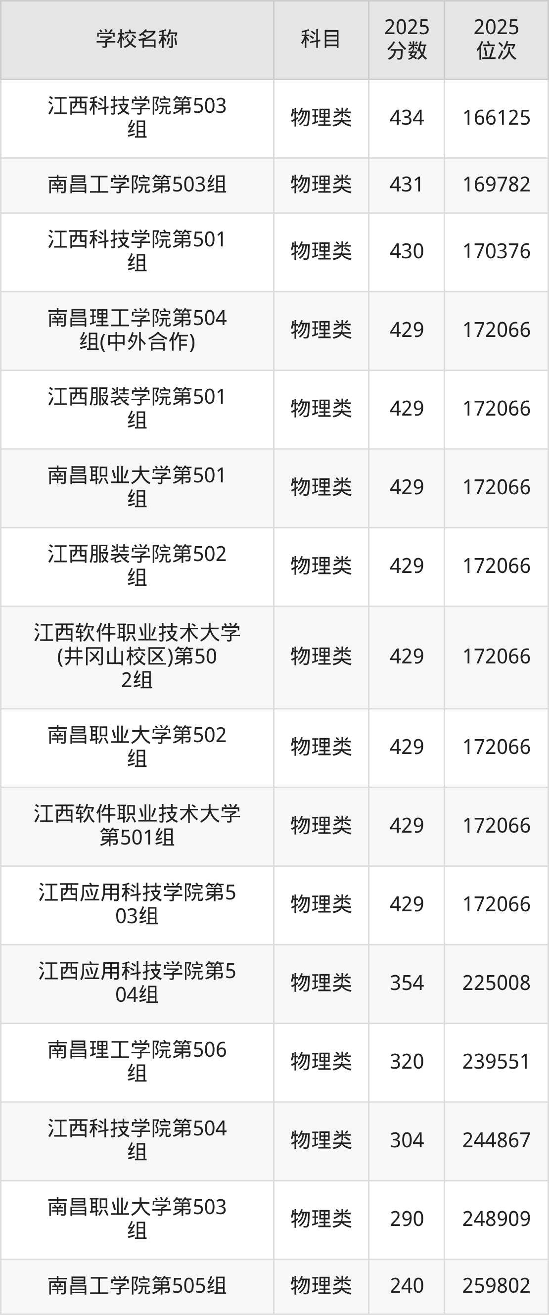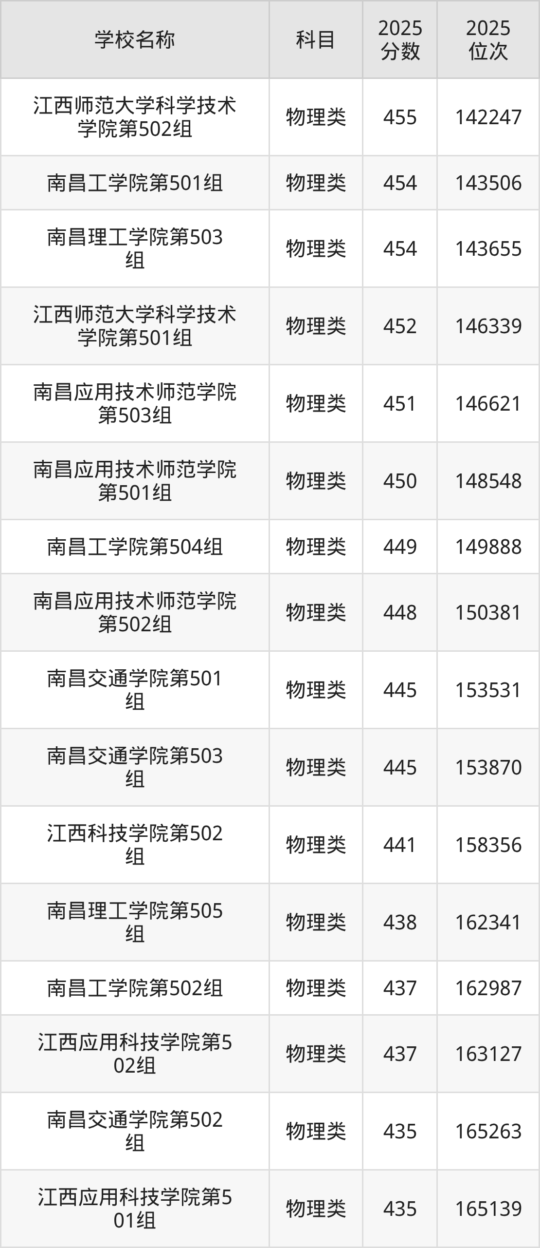 下文为2025年南昌市民办二本大学在江西物理类录取分数线和位次排名表,供大家参考: