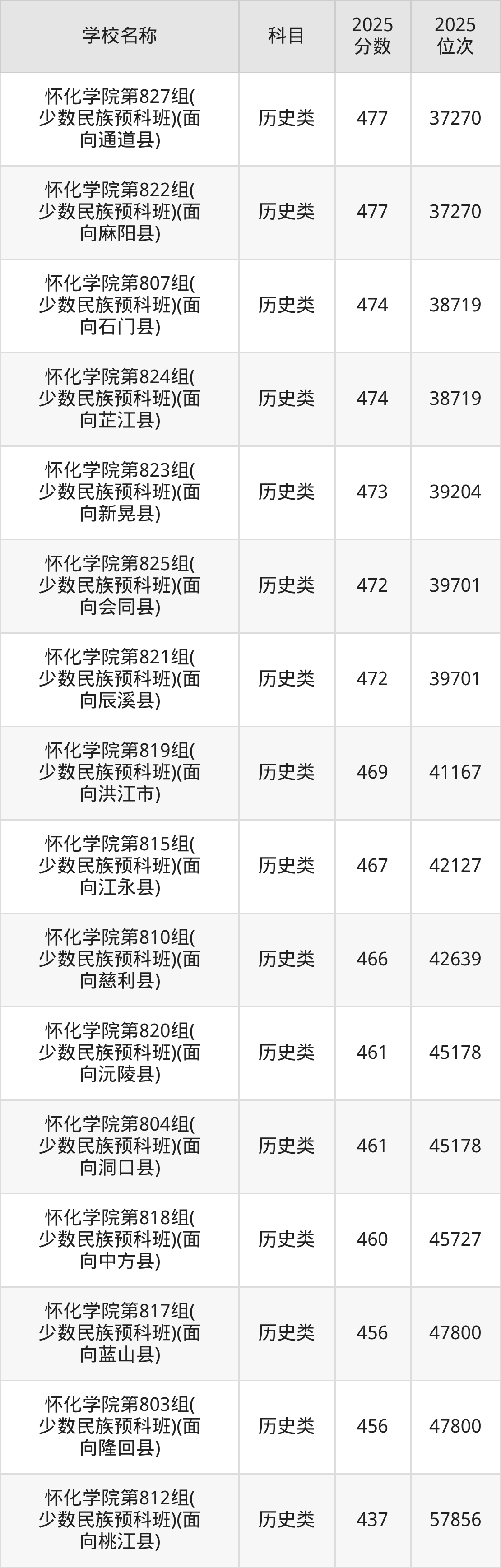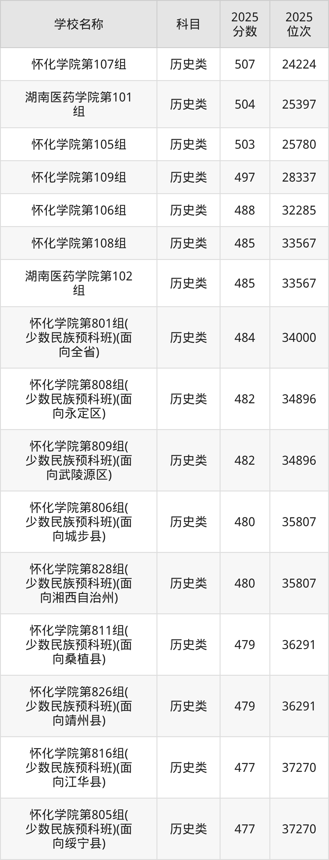 下文为2025年怀化市本科大学在湖南历史类录取分数线和位次排名表,供大家参考: