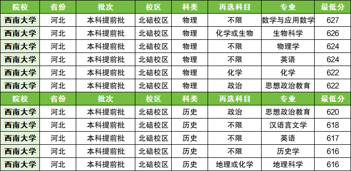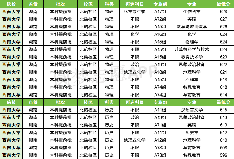 | 西南大学 | 101 | 历史类 | 599 | 3086 |