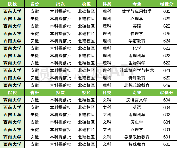 | 西南大学 | 104 | 历史类 | 599 | 3095 |