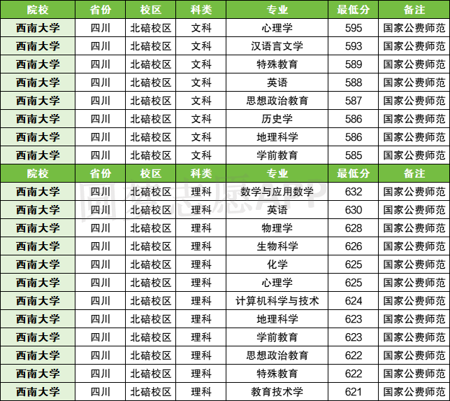 二、2023年西南大学公费师范生最低分数线
