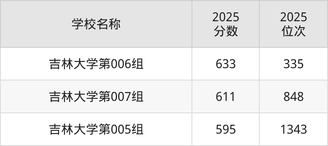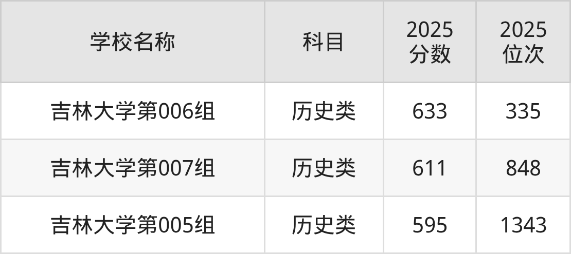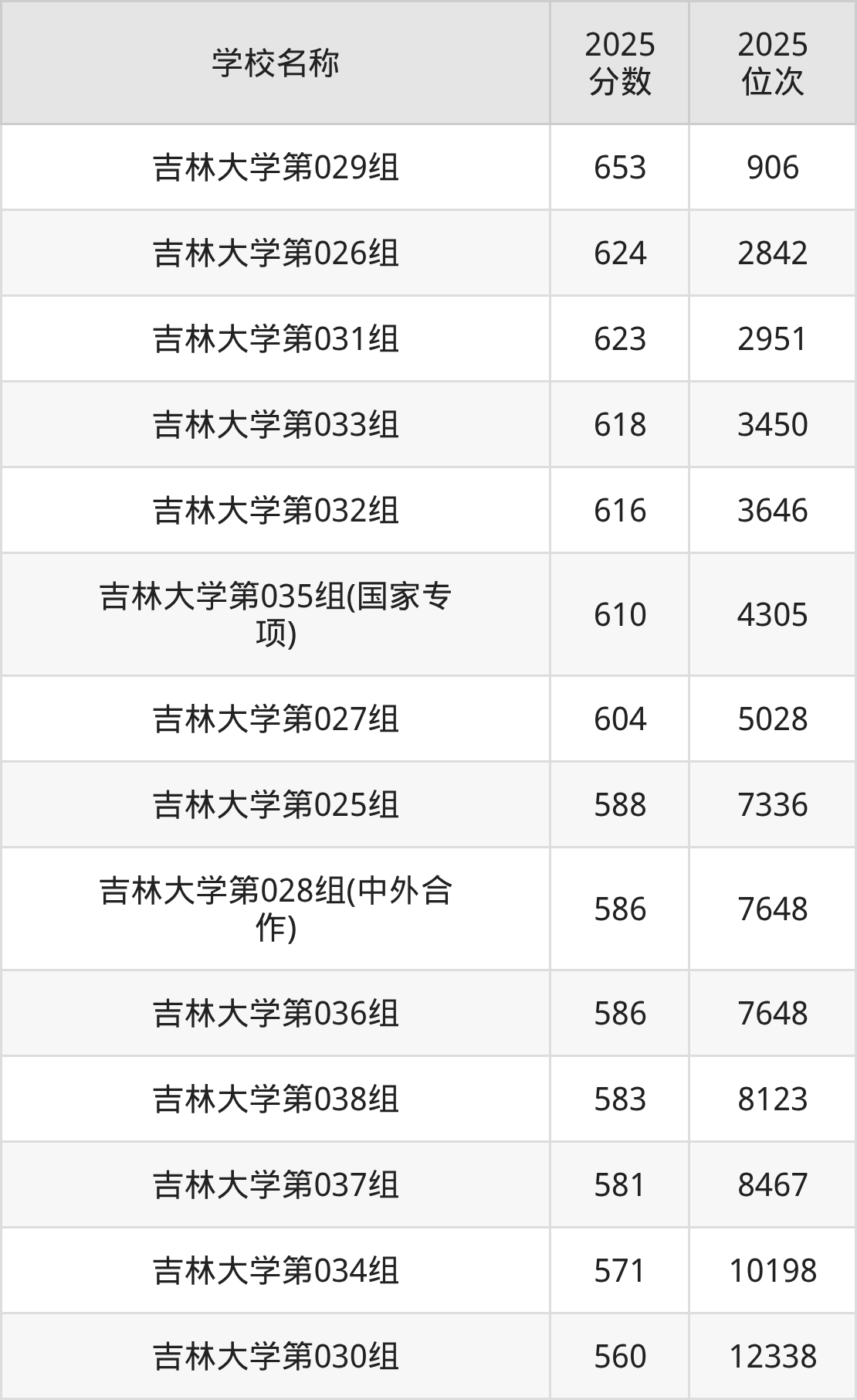 下文为2025年吉林省985大学在吉林历史类录取分数线和位次排名表,供大家参考: