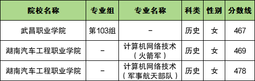 2024年在湖南历史类招女生的定向士官学校只有2所,其中分数线较高的是湖南汽车工程职业学院,2024最低分478分;分数线较低的是武昌职业学院(第103组),2024最低分467分。