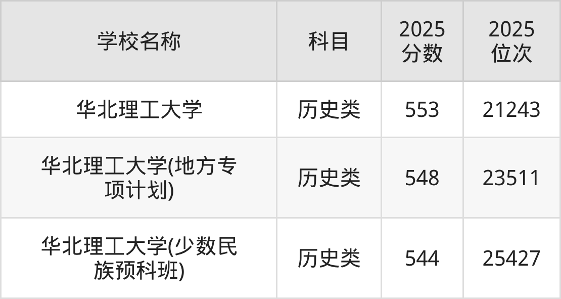 下文为2025年唐山市一本大学在河北历史类录取分数线和位次排名表,供大家参考: