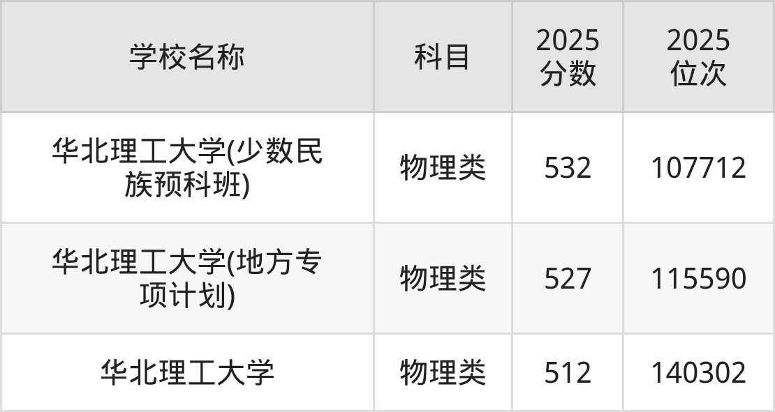 下文为2025年唐山市一本大学在河北物理类录取分数线和位次排名表,供大家参考: