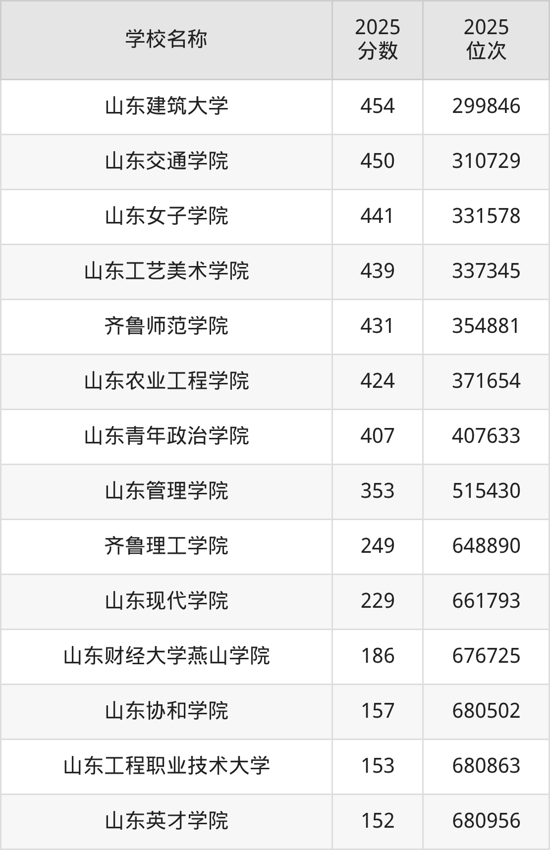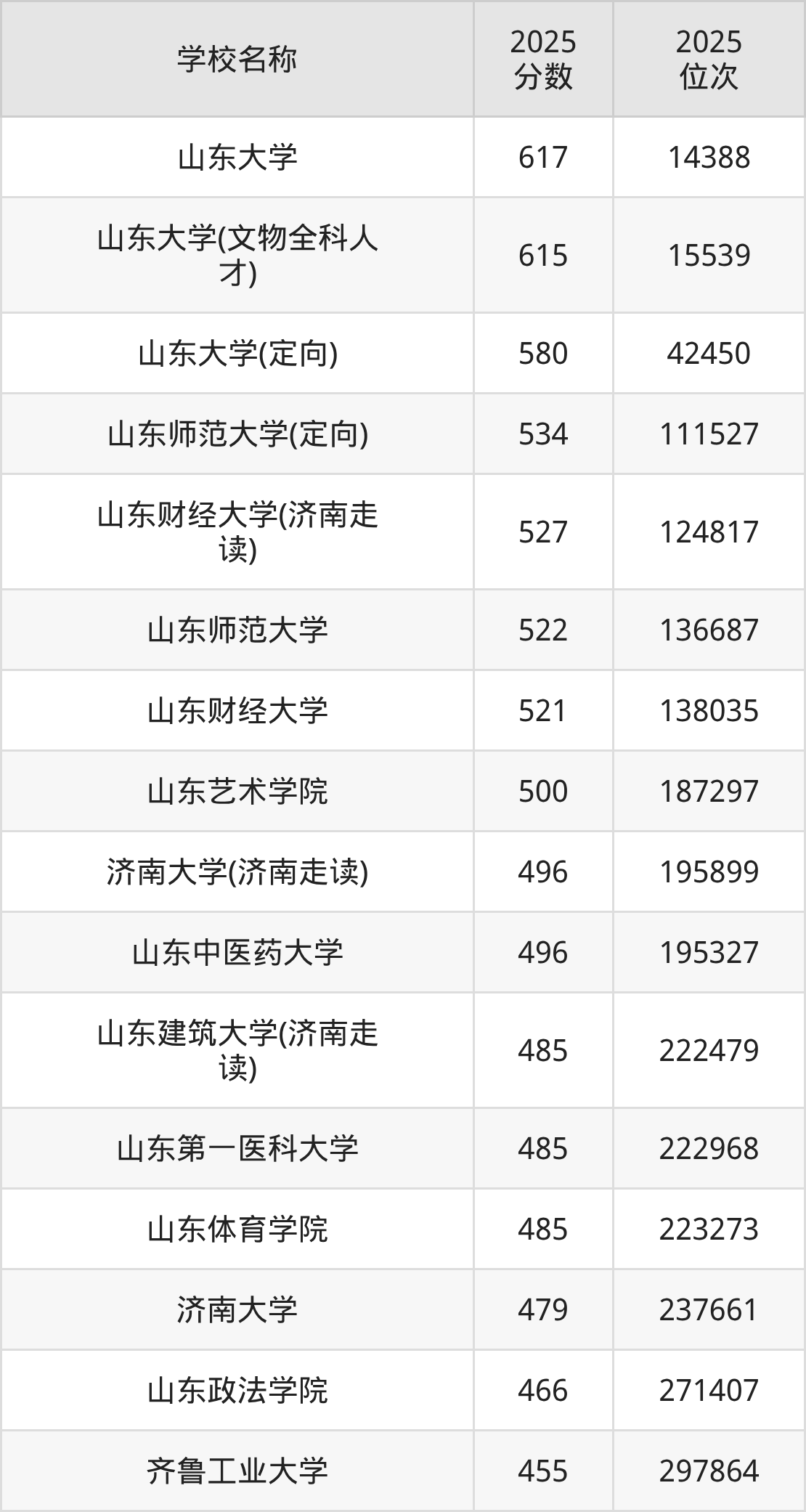 下文为2025年济南市本科大学在山东录取分数线和位次排名表,供大家参考: