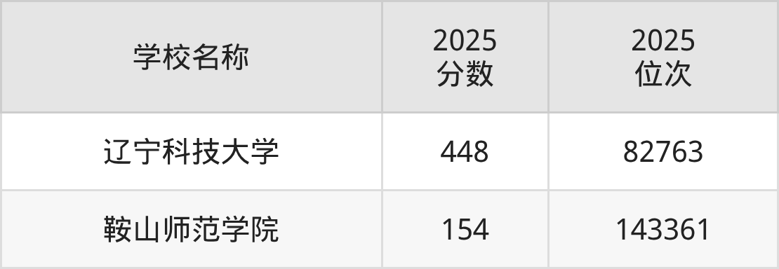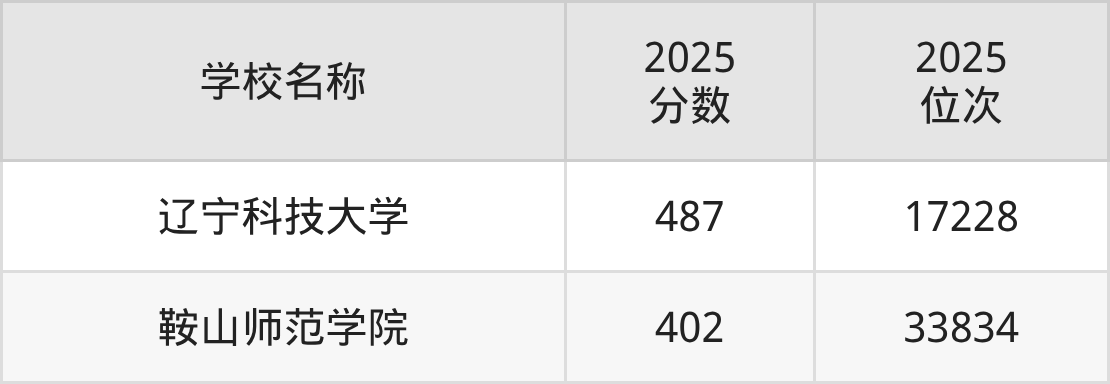 下文为2025年鞍山市本科大学在辽宁历史类录取分数线和位次排名表,供大家参考: