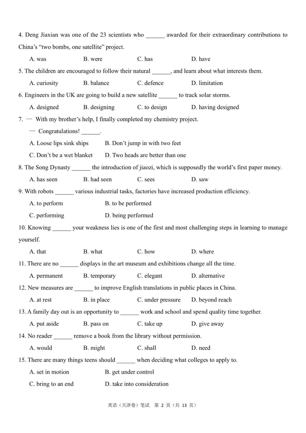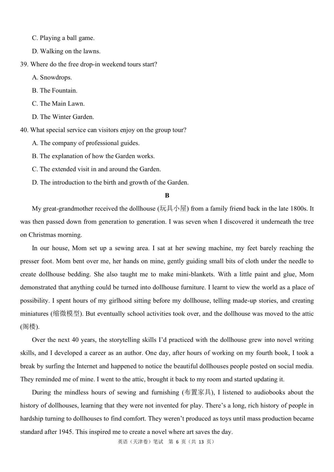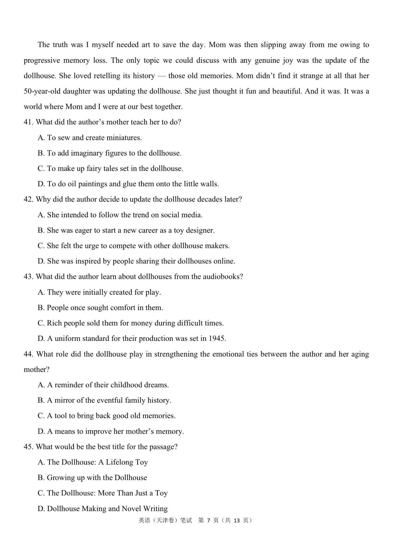 二、2024年高考天津卷英语真题及答案
