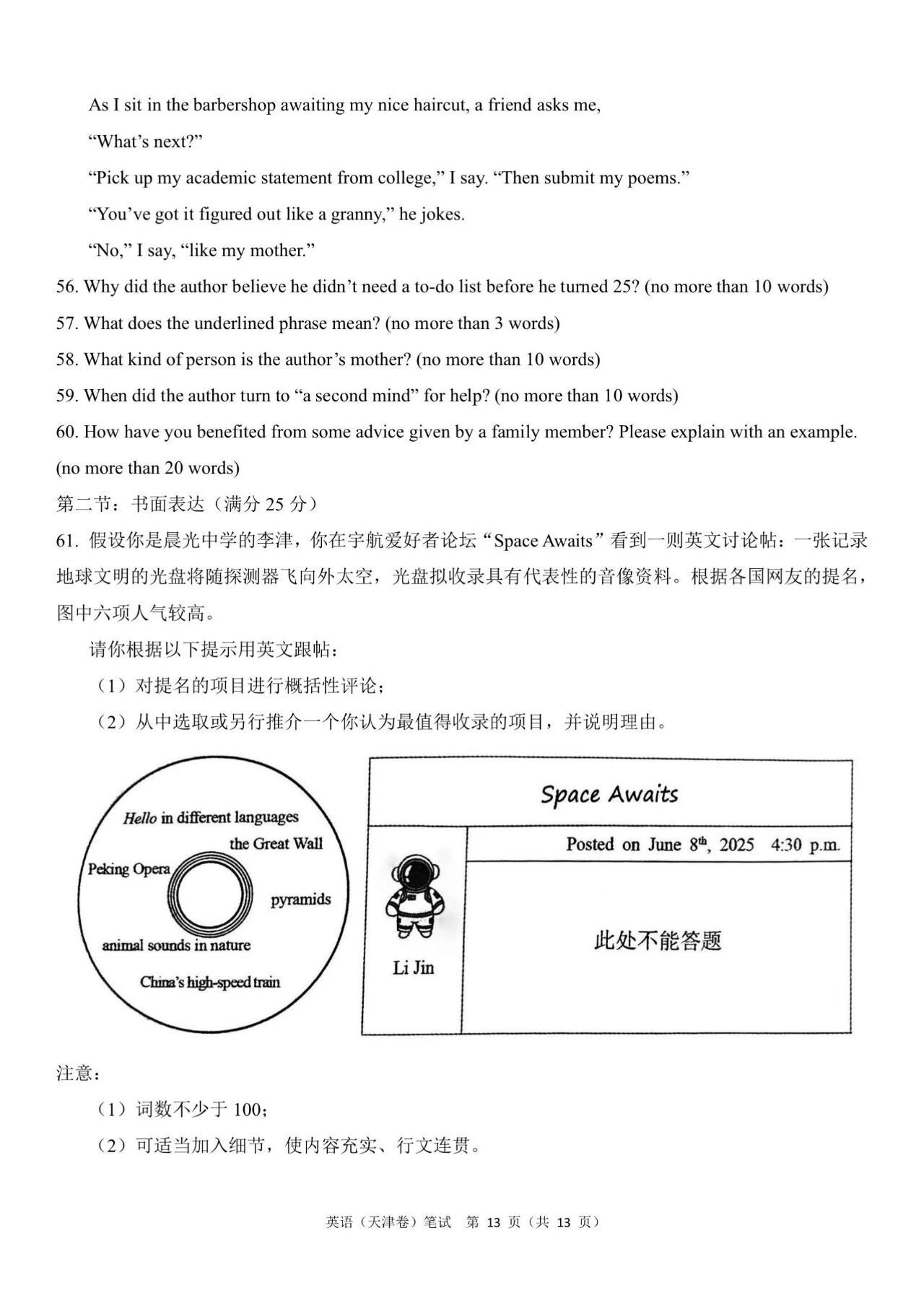 2025年天津卷英语试题适用范围:天津市内考生
