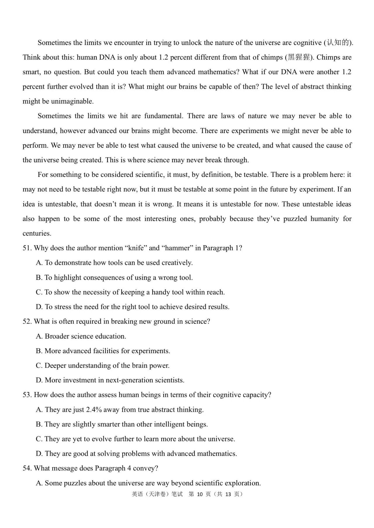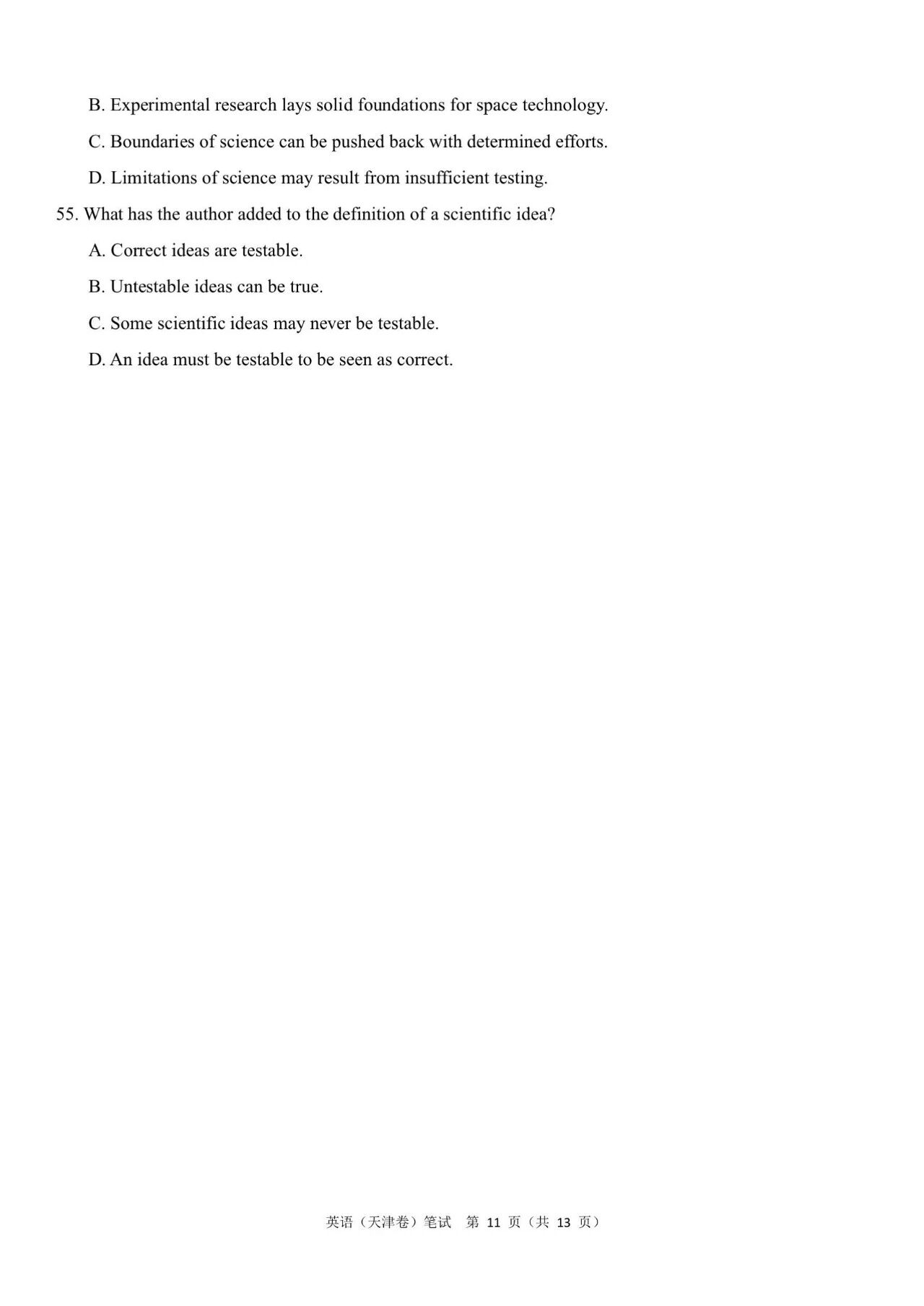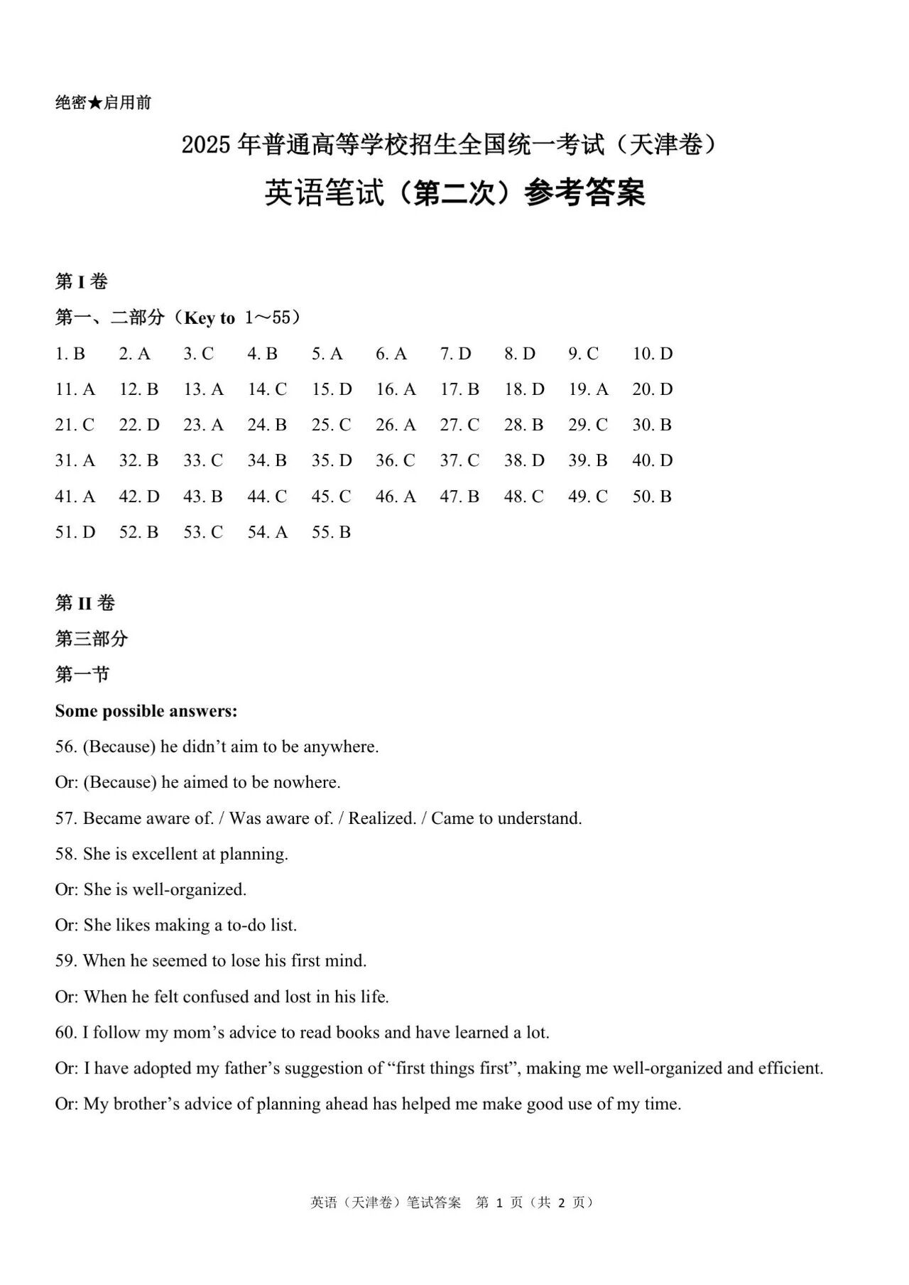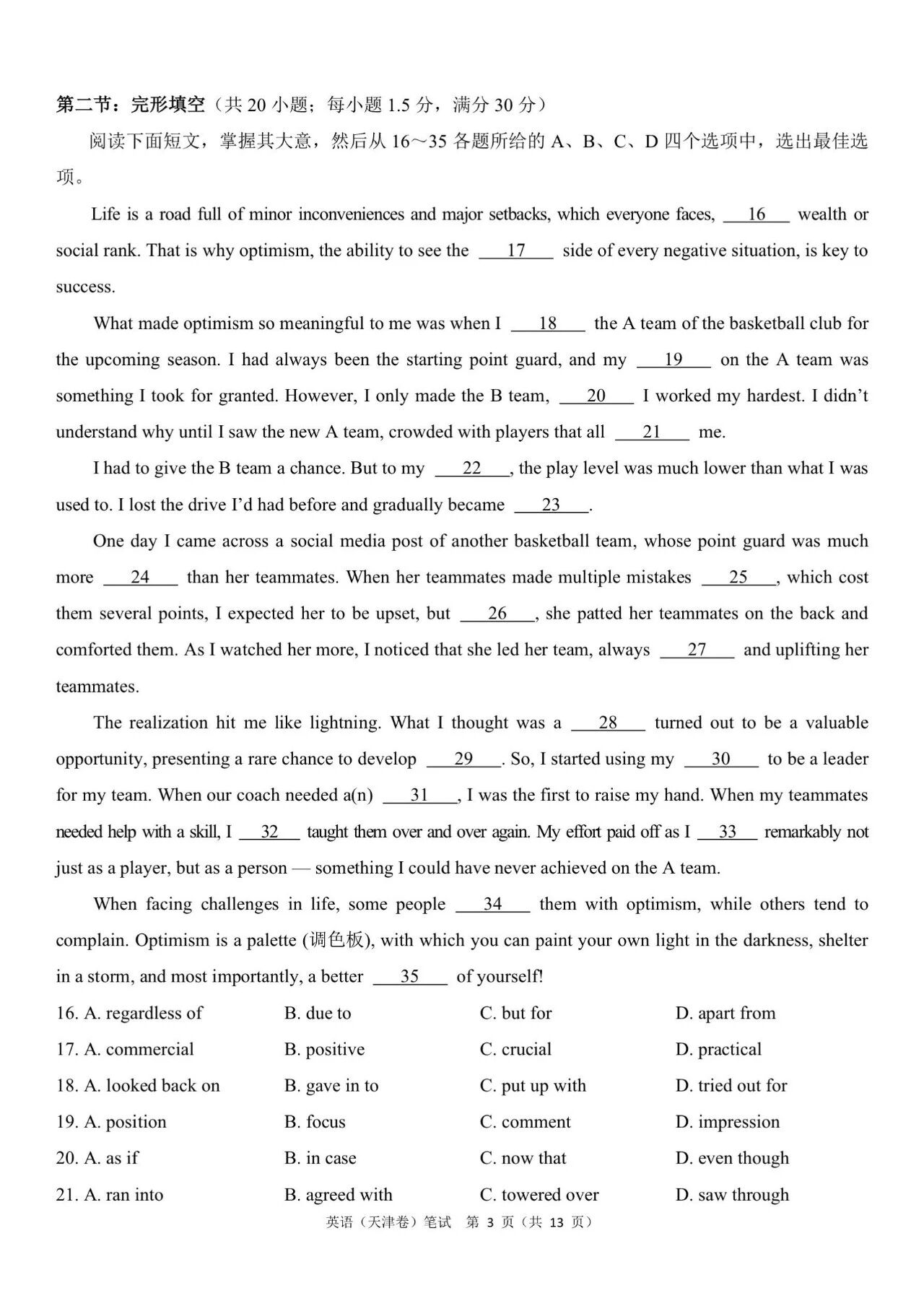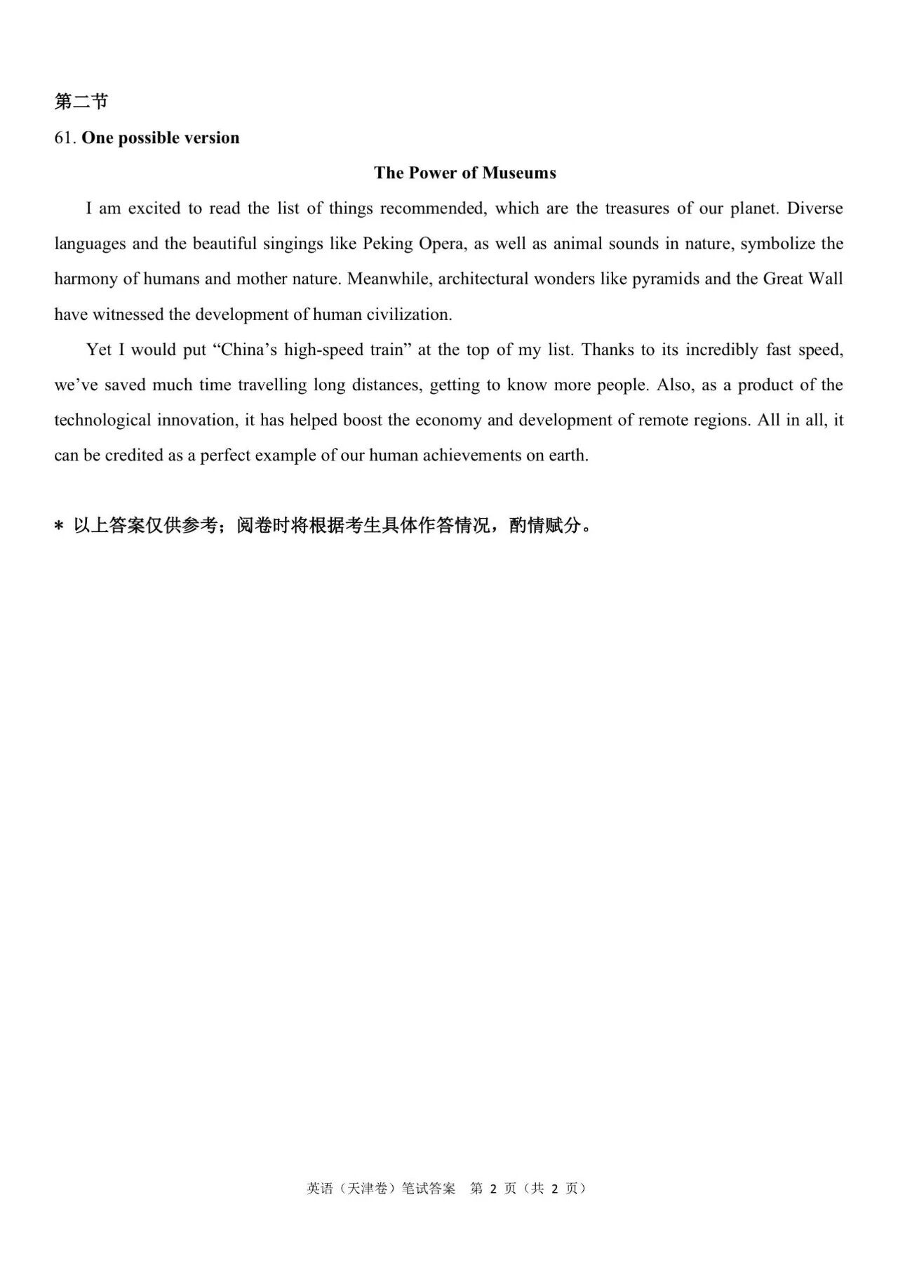 (3)2024年高考天津卷英语答案解析: