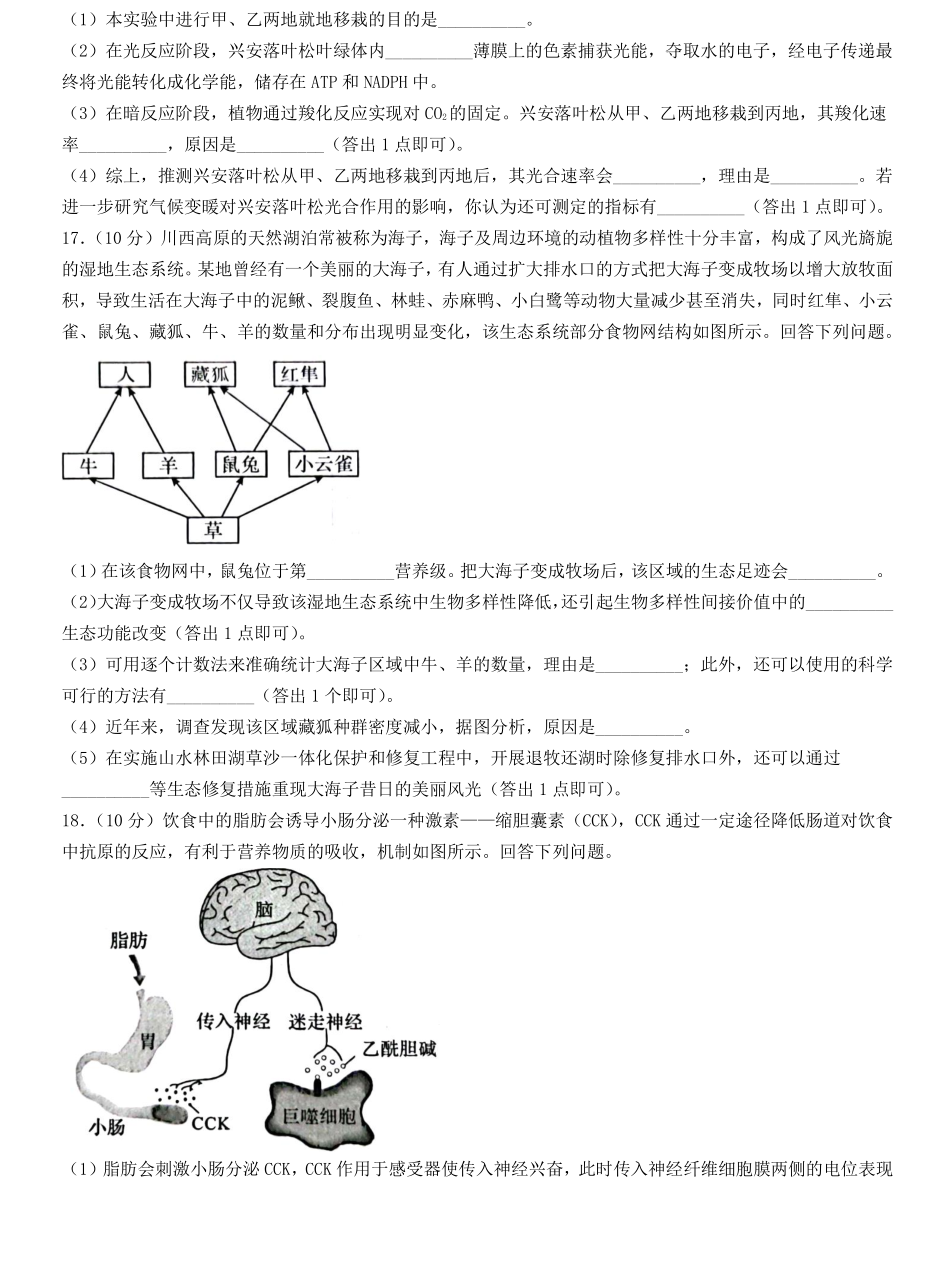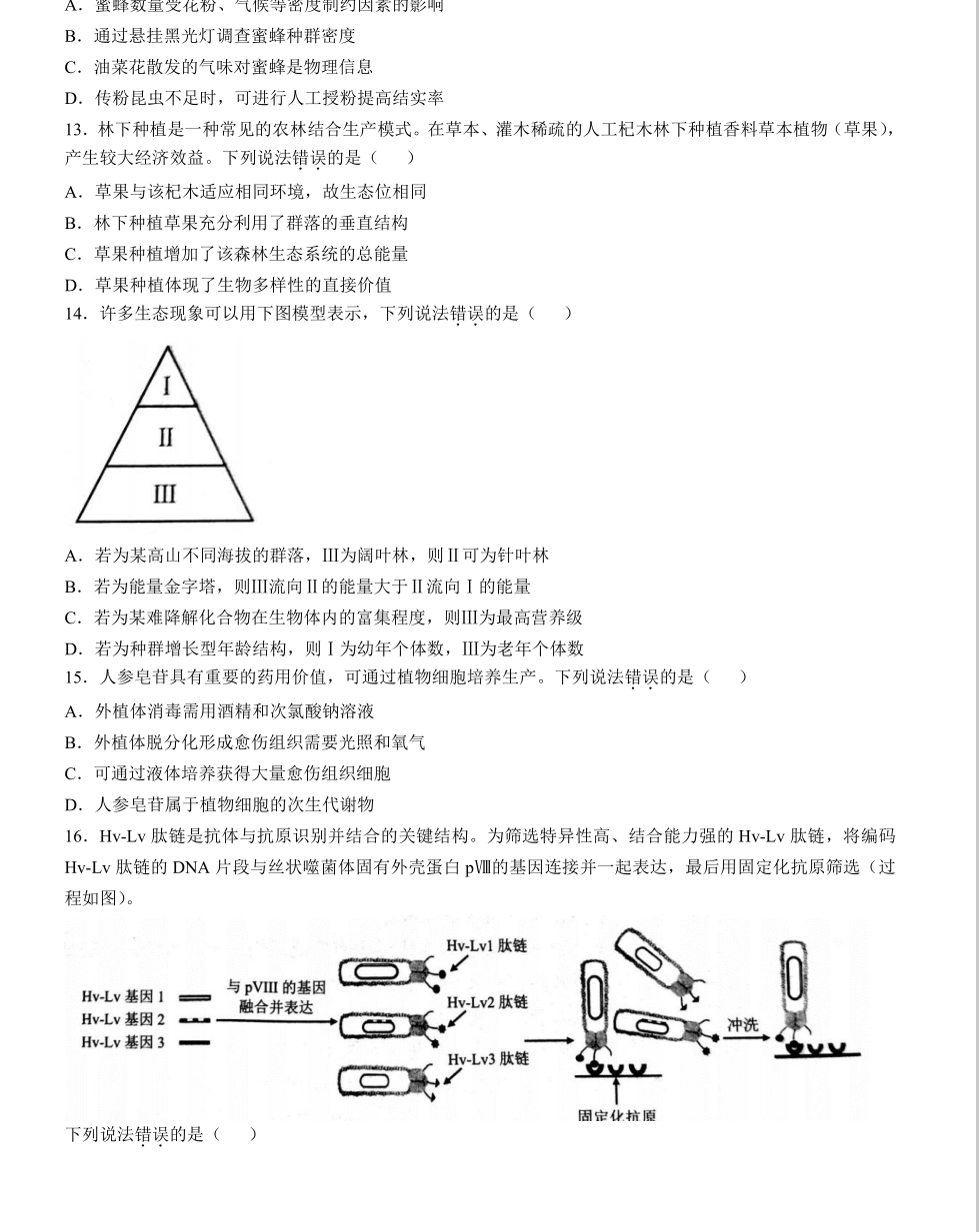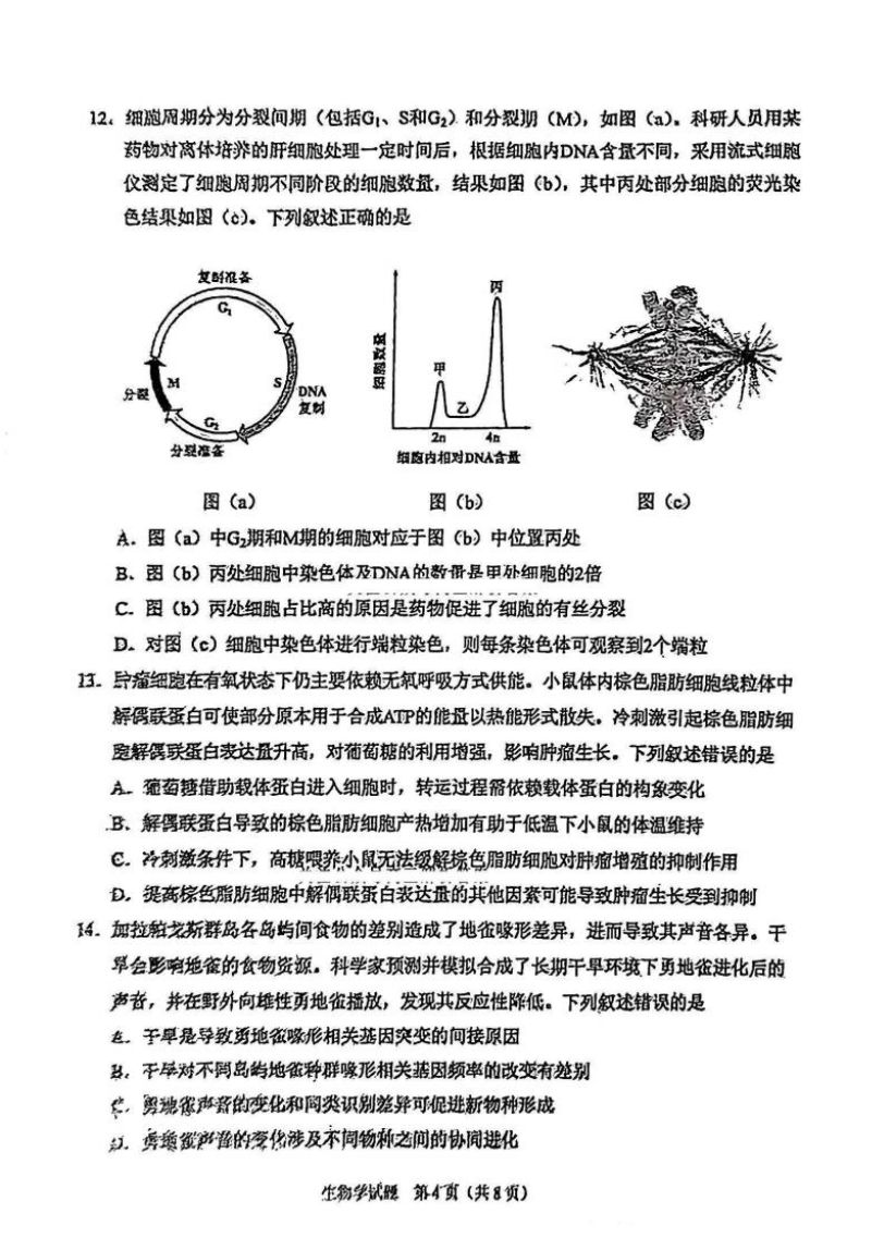 3、2025陕西、青海、宁夏、陕西四省新高考适应性演练生物试卷及答案