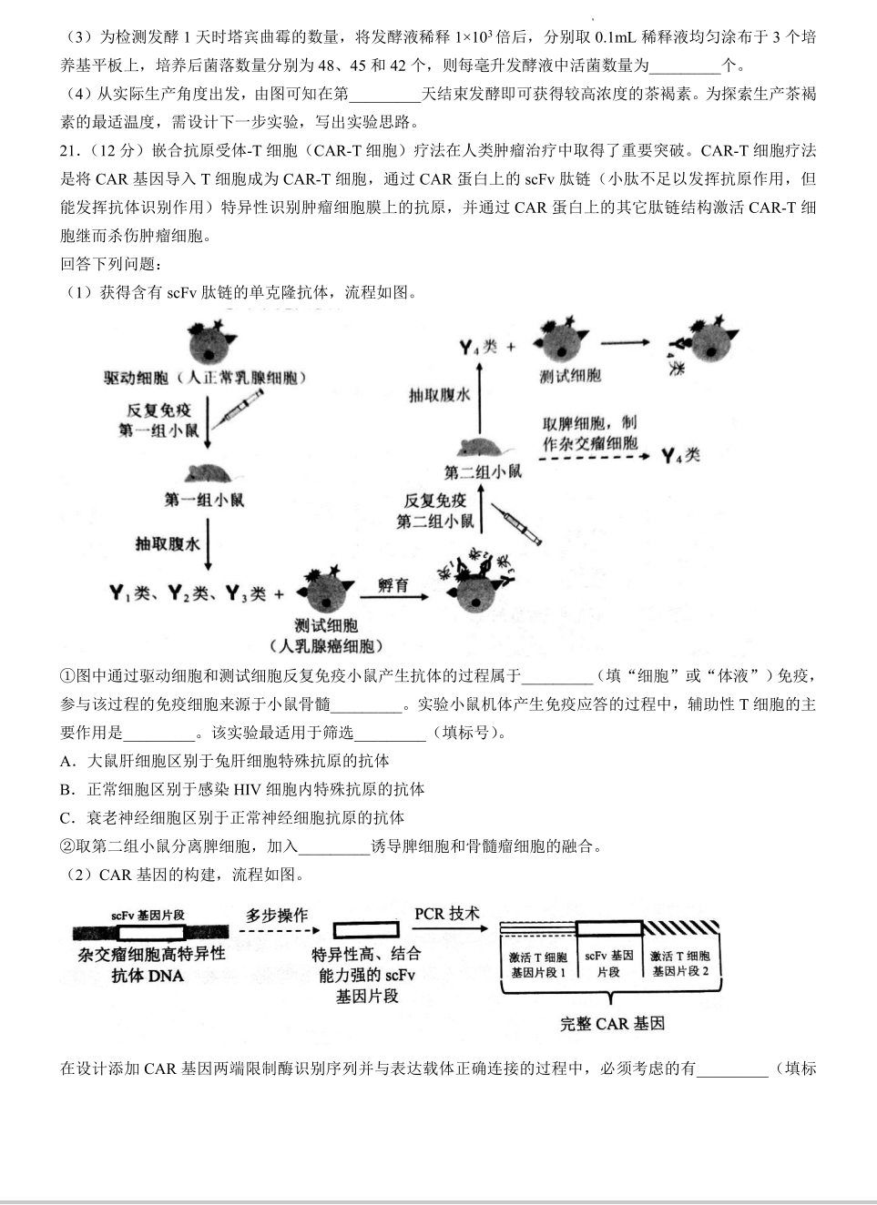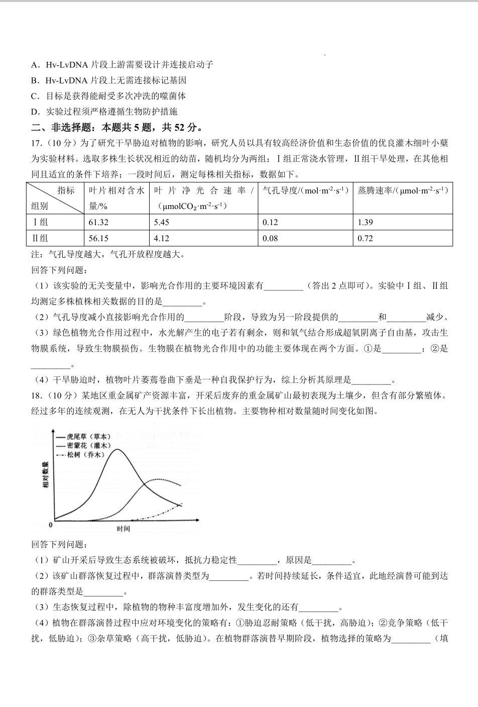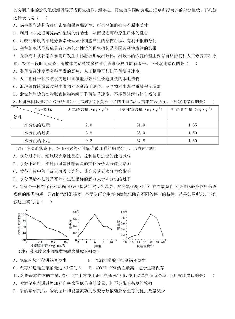 3、2025陕西、青海、宁夏、陕西四省新高考适应性演练生物试卷及答案