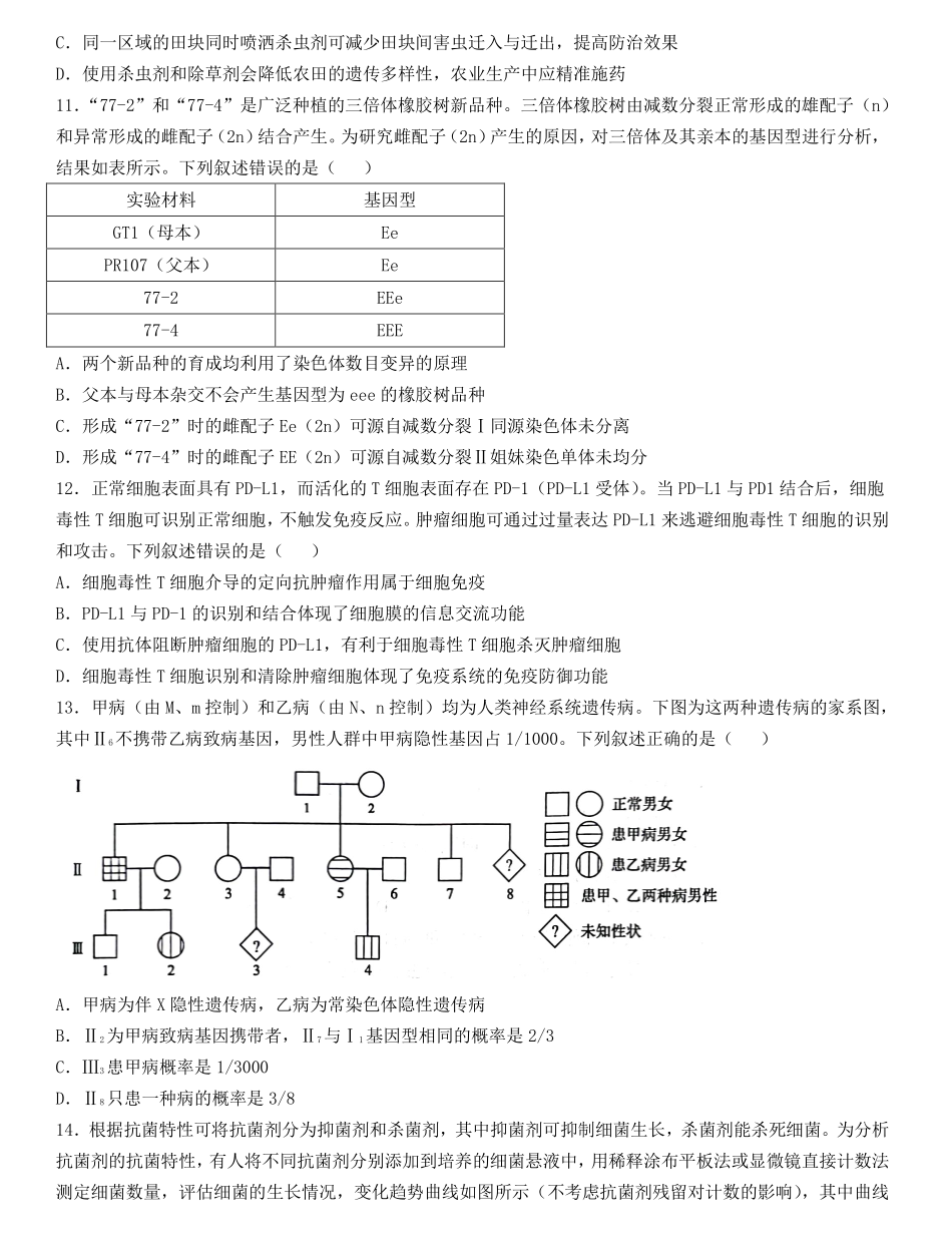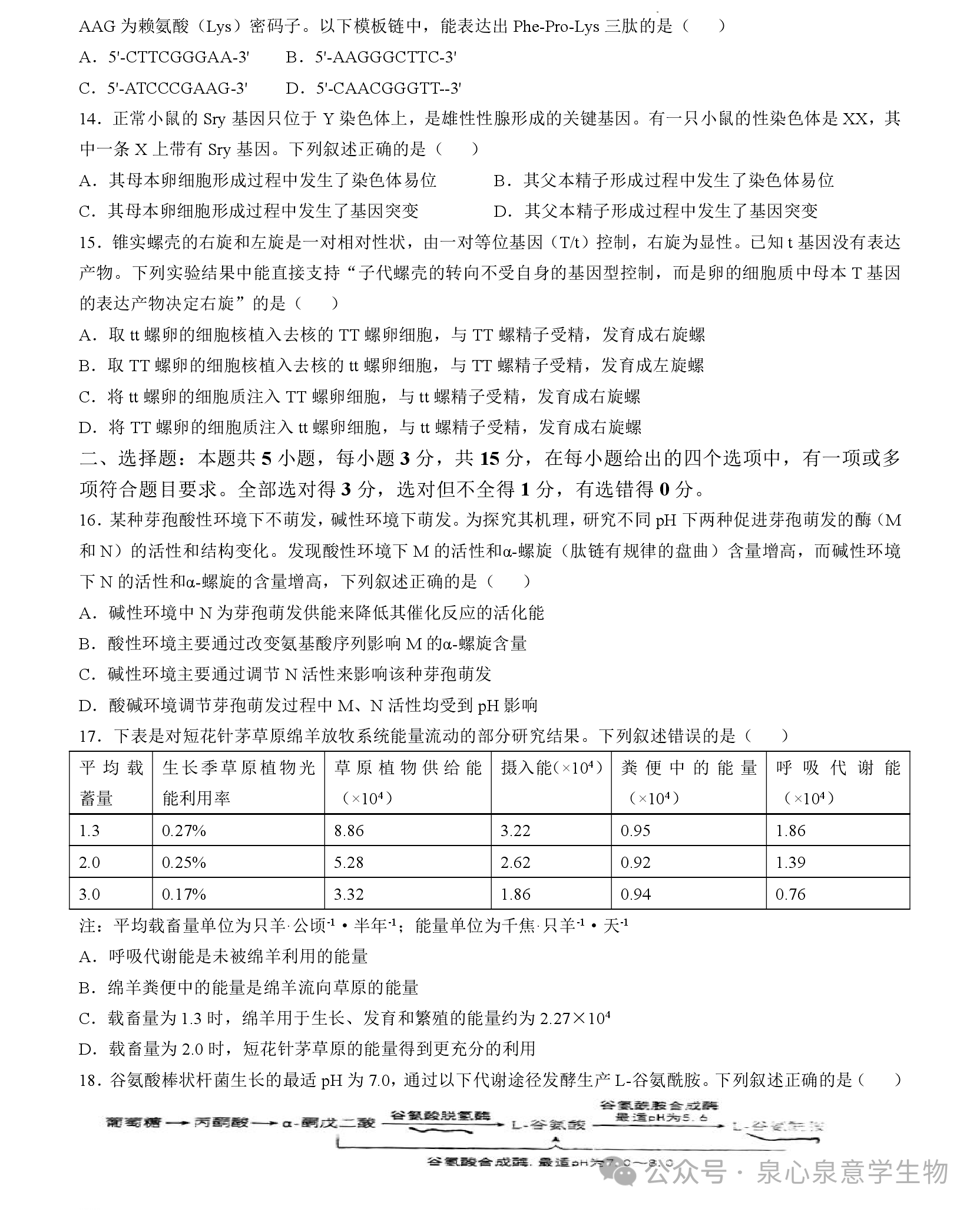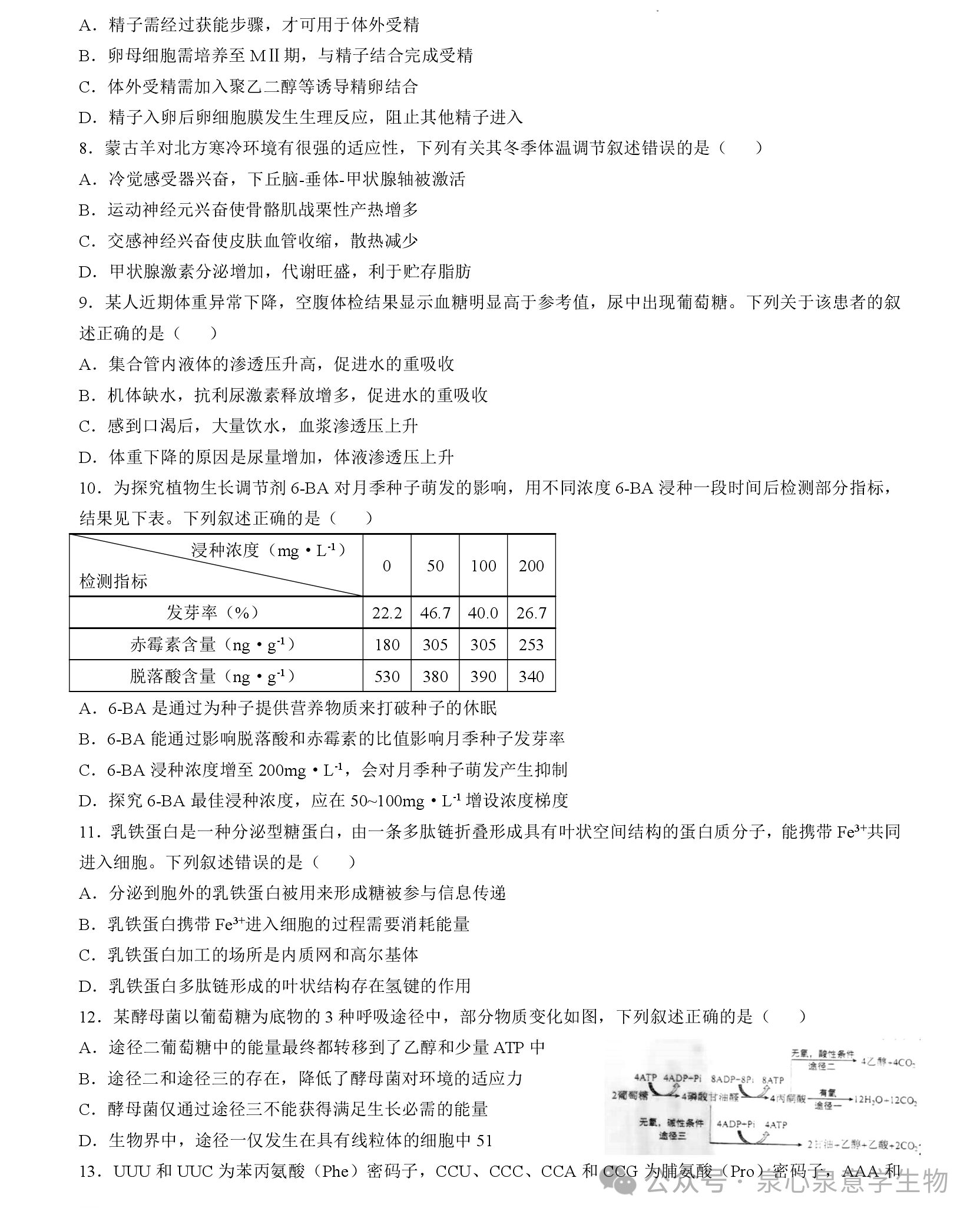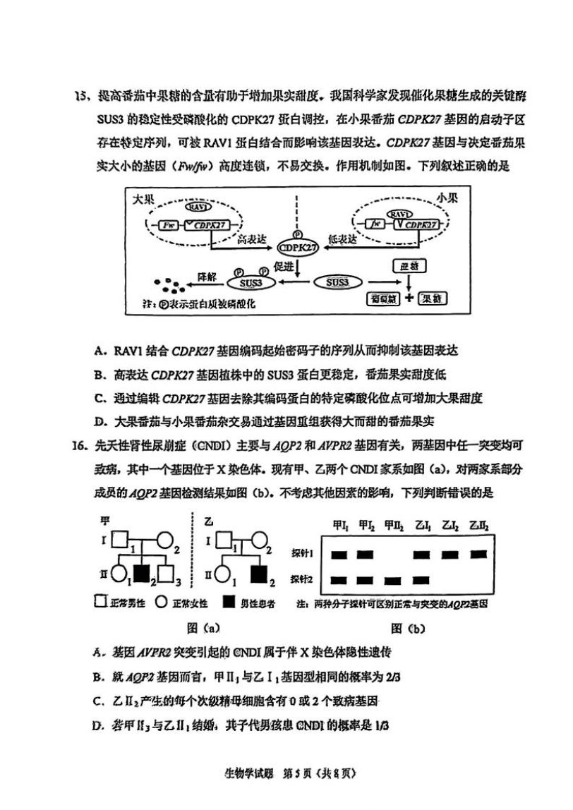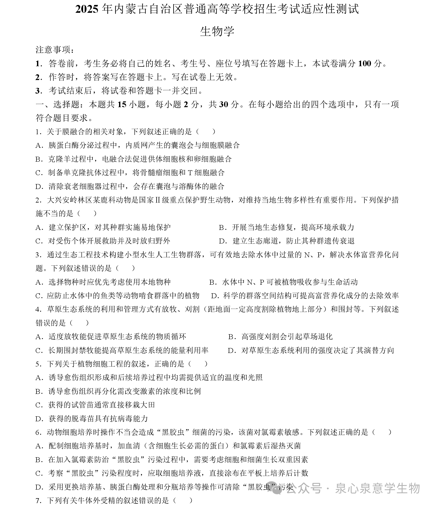 5、2025内蒙古新高考适应性演练生物试卷及答案