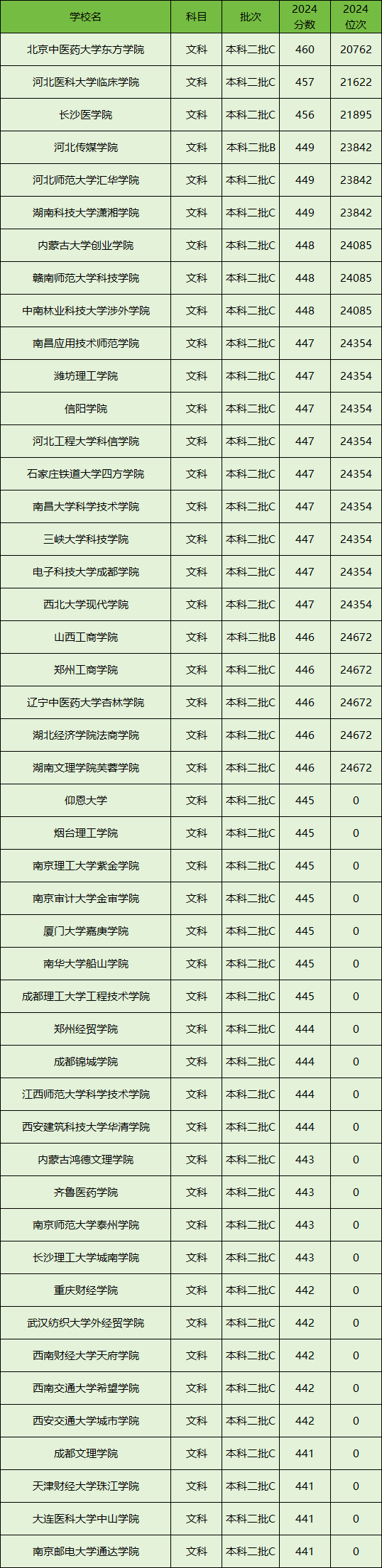| 山西传媒学院 | 本科二批A | 458 | 21334 |
