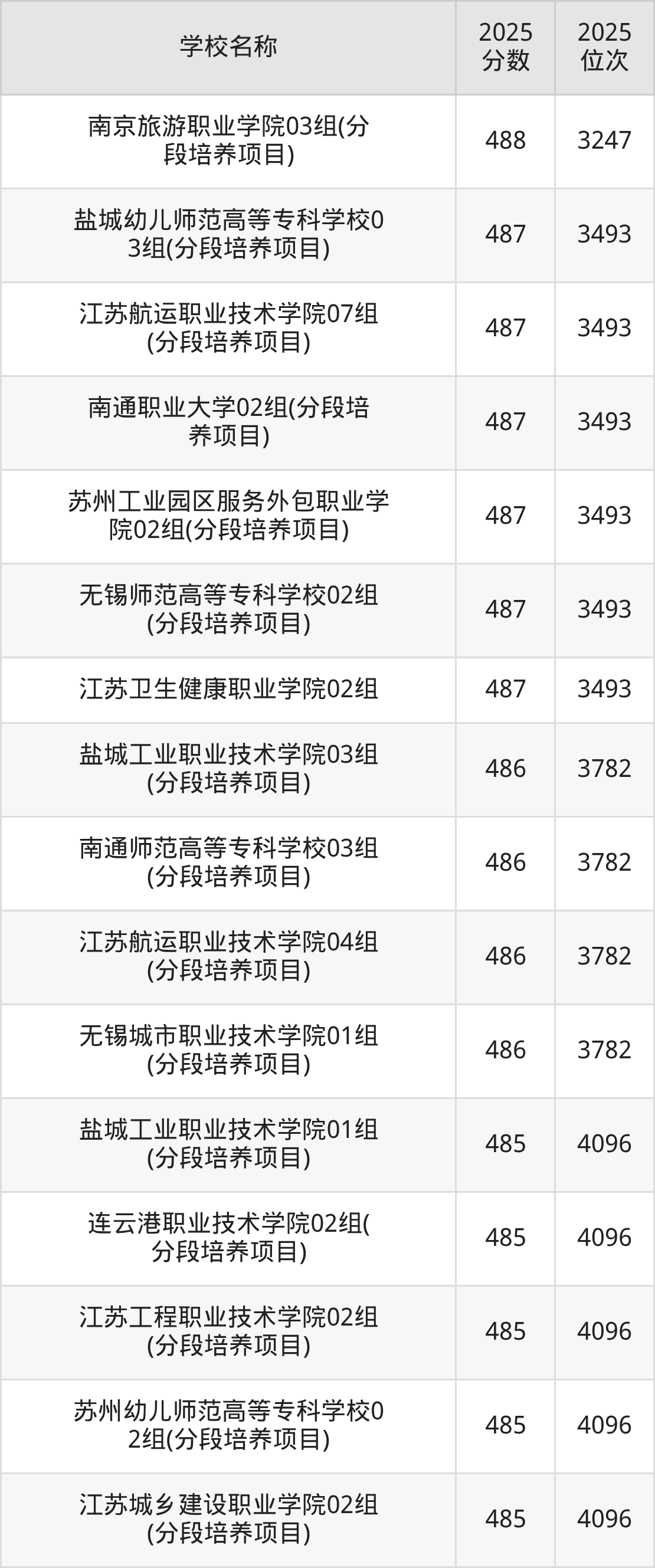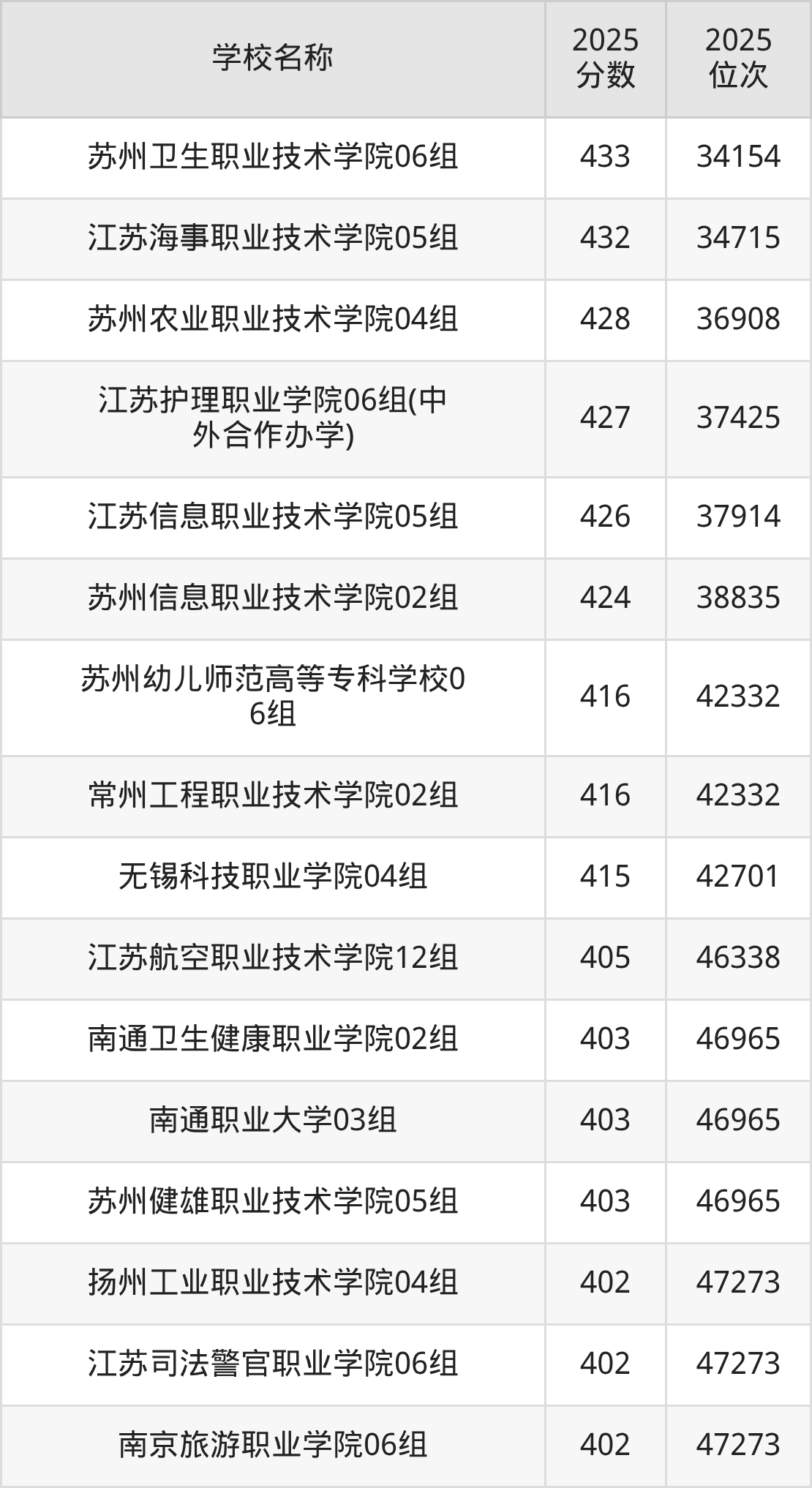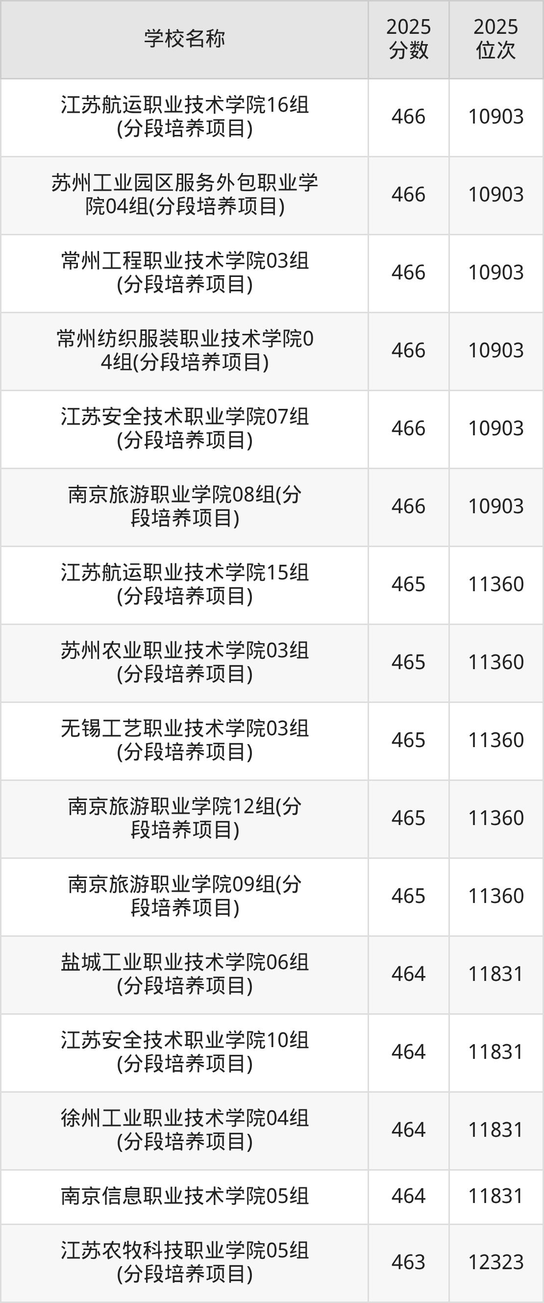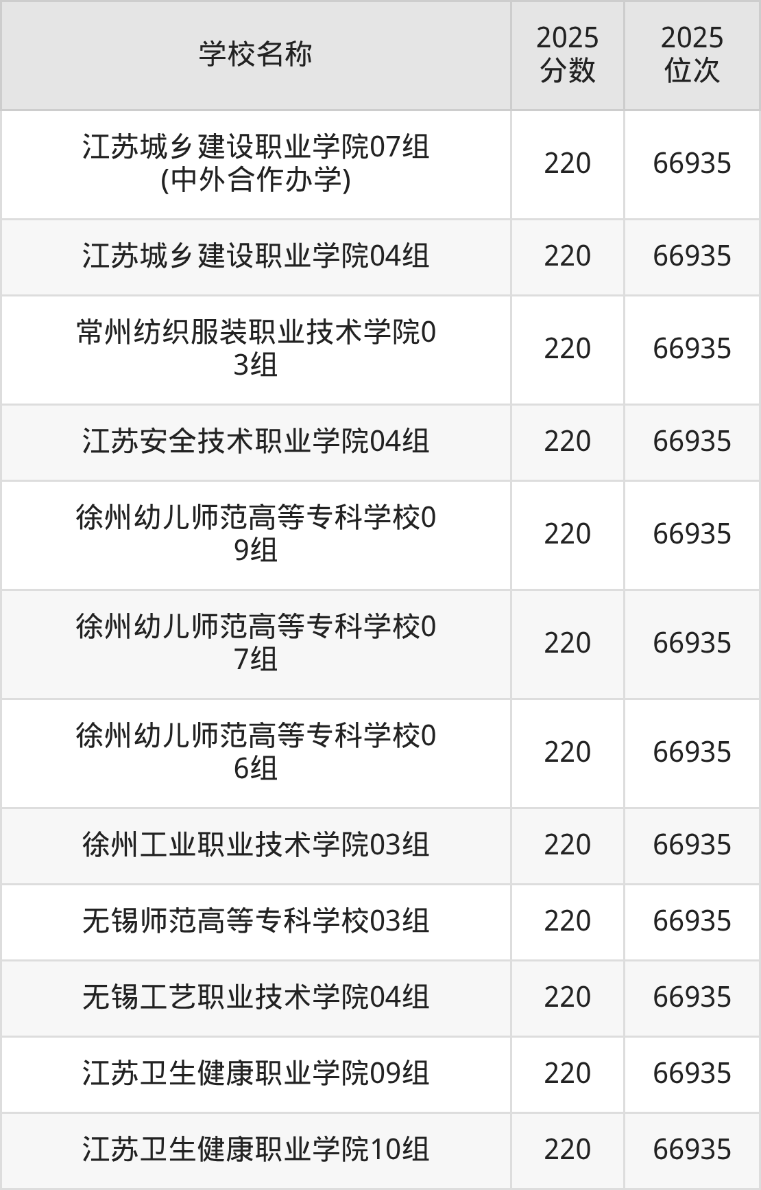 下文为2025年江苏省公办专科大学在江苏物理类录取分数线和位次排名表,供大家参考: