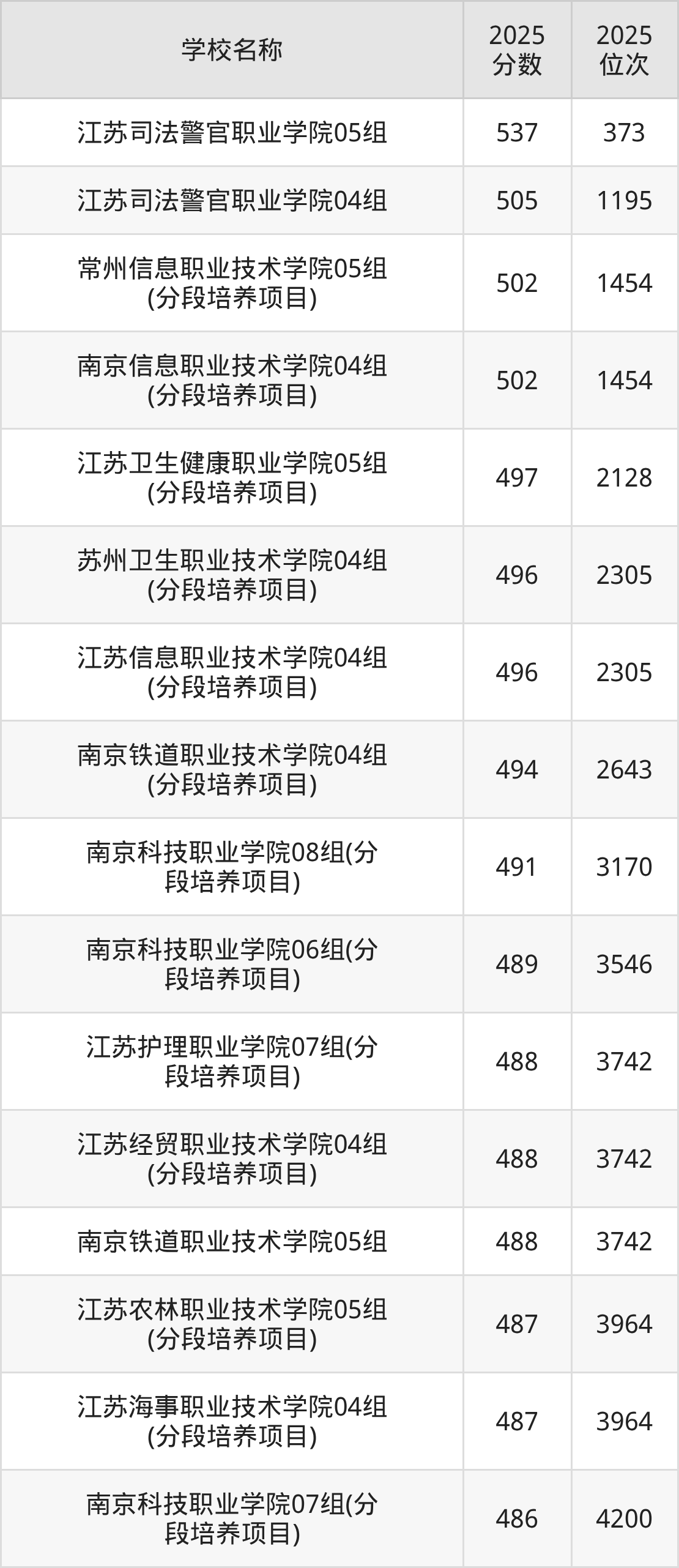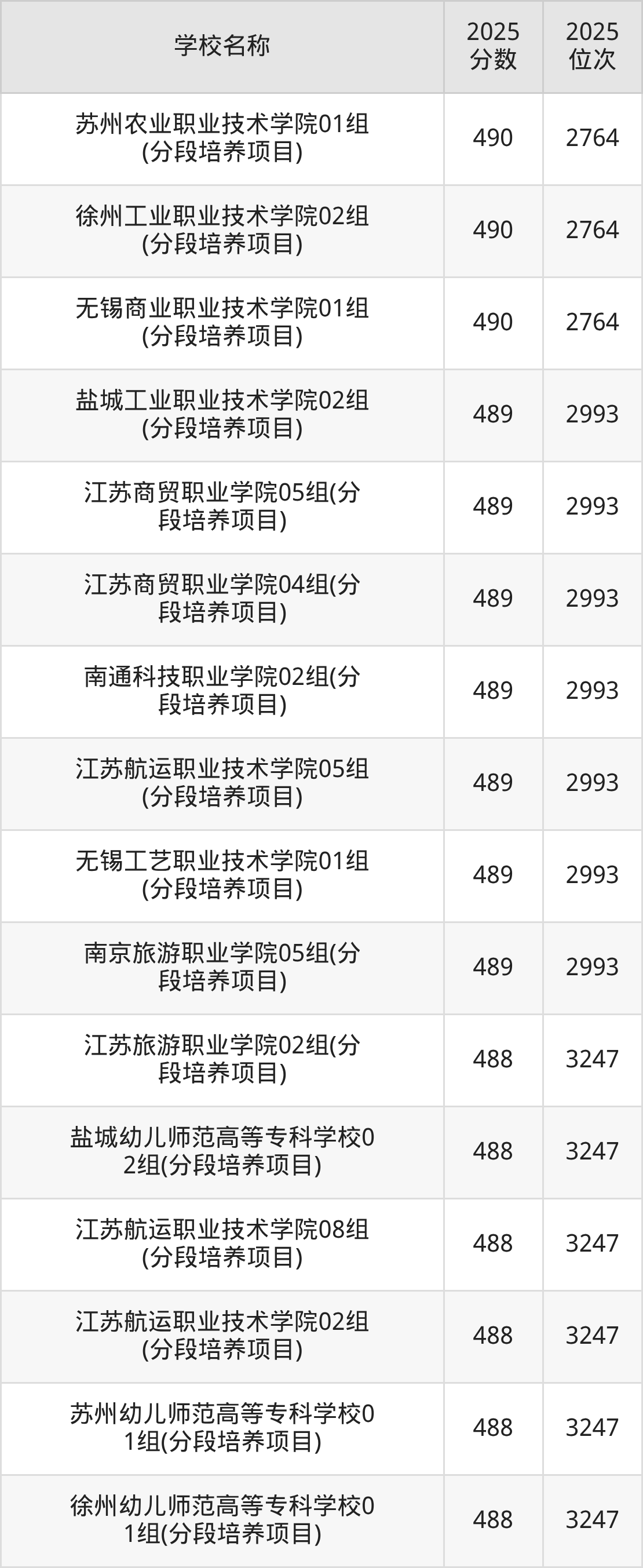 下文为2025年江苏省公办专科大学在江苏历史类录取分数线和位次排名表,供大家参考: