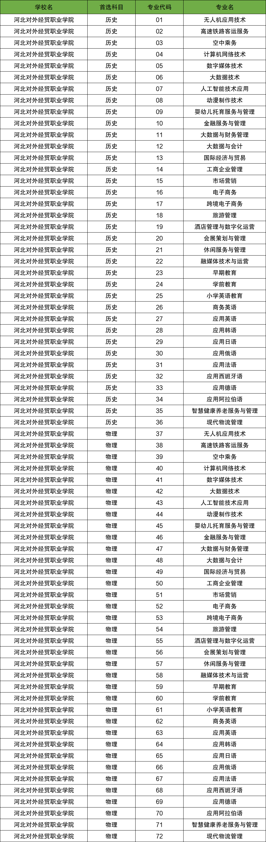 河北对外经贸职业学院志愿填报专业代码一览表:
