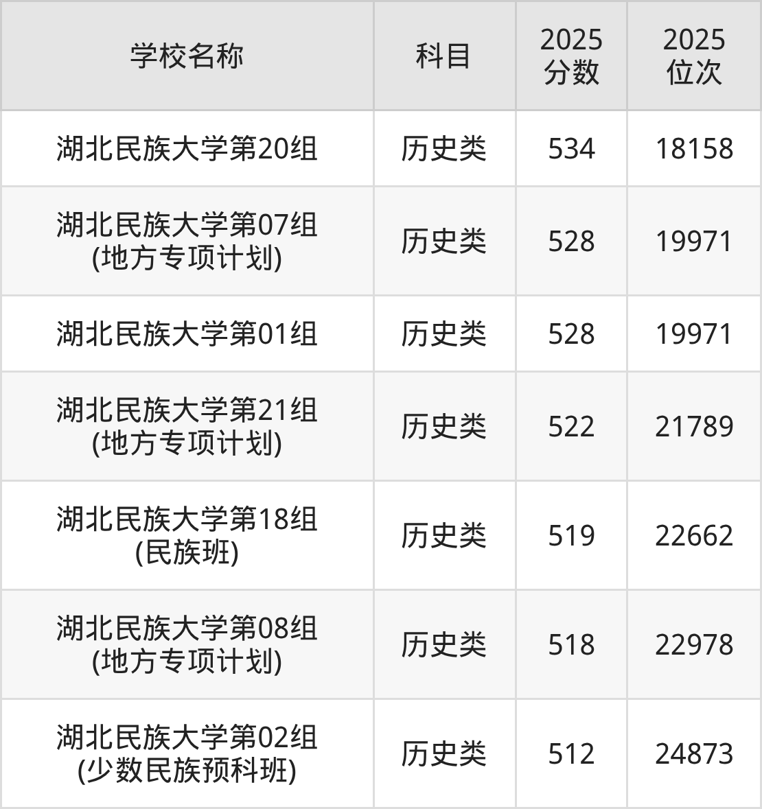 下文为2025年恩施土家族苗族自治州一本大学在湖北历史类录取分数线和位次排名表,供大家参考: